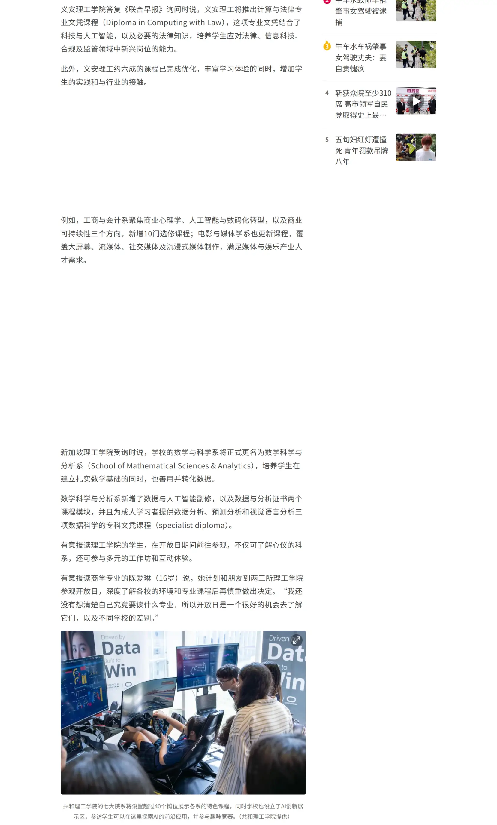 With advancement in AI and technology, alongside the rapid evolution of related industries, Singapore’s five polytechnics have progressively adapted and enhanced their curricula, increased practical training and cultivated students’ future-orientated professional skills.