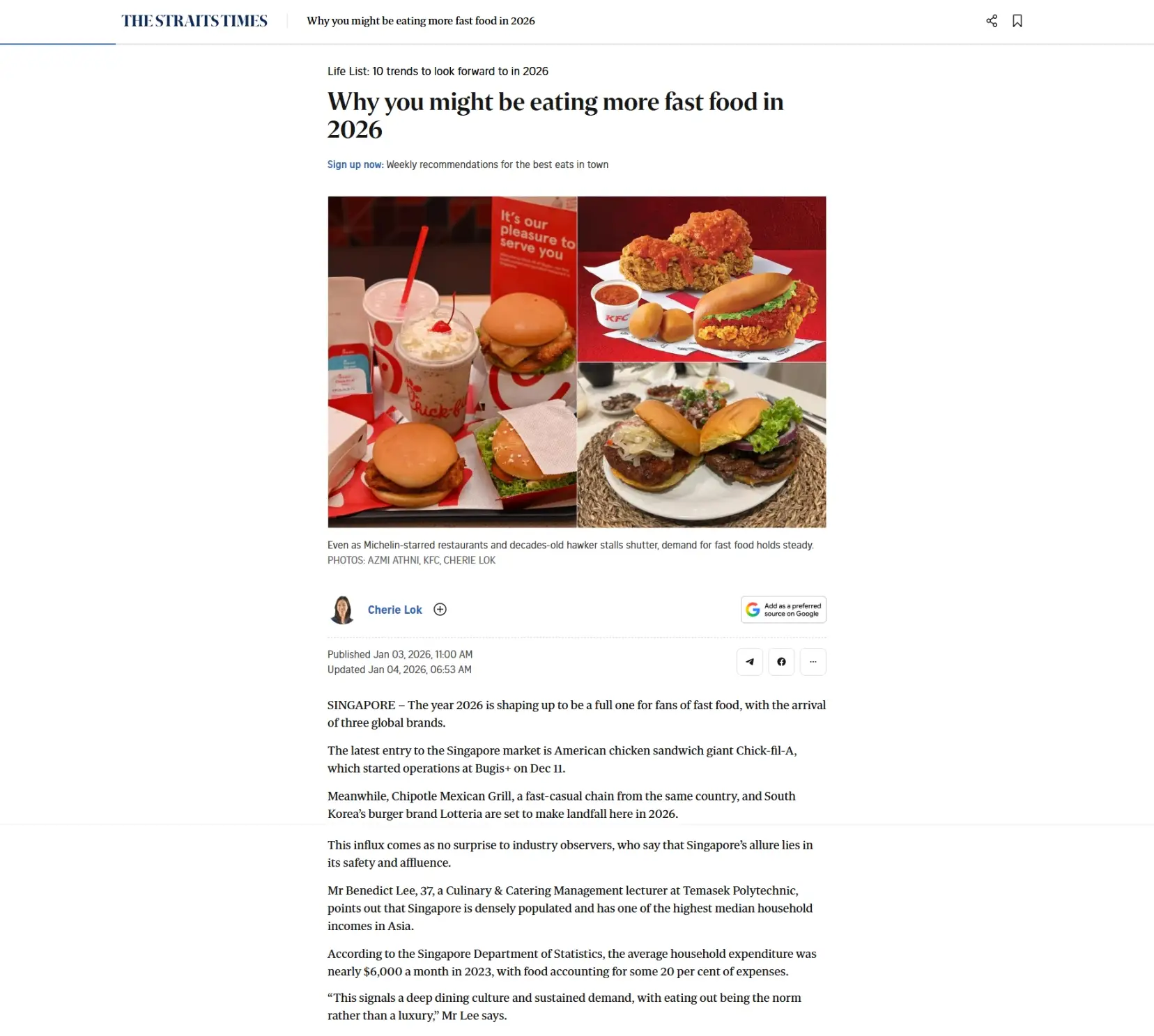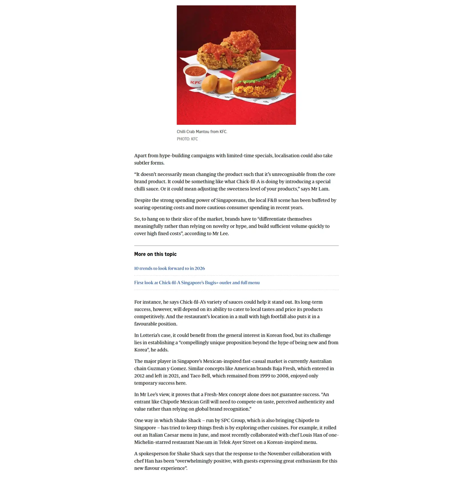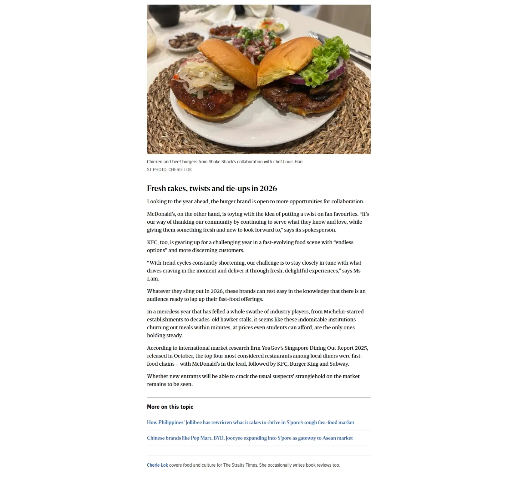 2026 is shaping up to be a full one for fans of fast food, with the arrival of three global brands. This influx comes as no surprise to industry observers, who said that Singapore’s allure lies in its safety and affluence. A Culinary & Catering Management lecturer at Temasek Polytechnic, Benedict Lee points out that Singapore is densely populated and has one of the highest median household incomes in Asia. He also said that Singapore serves as a good vantage point for new entrants who want to understand the regional market because of the diversity of its food scene and the varied tastes of diners.