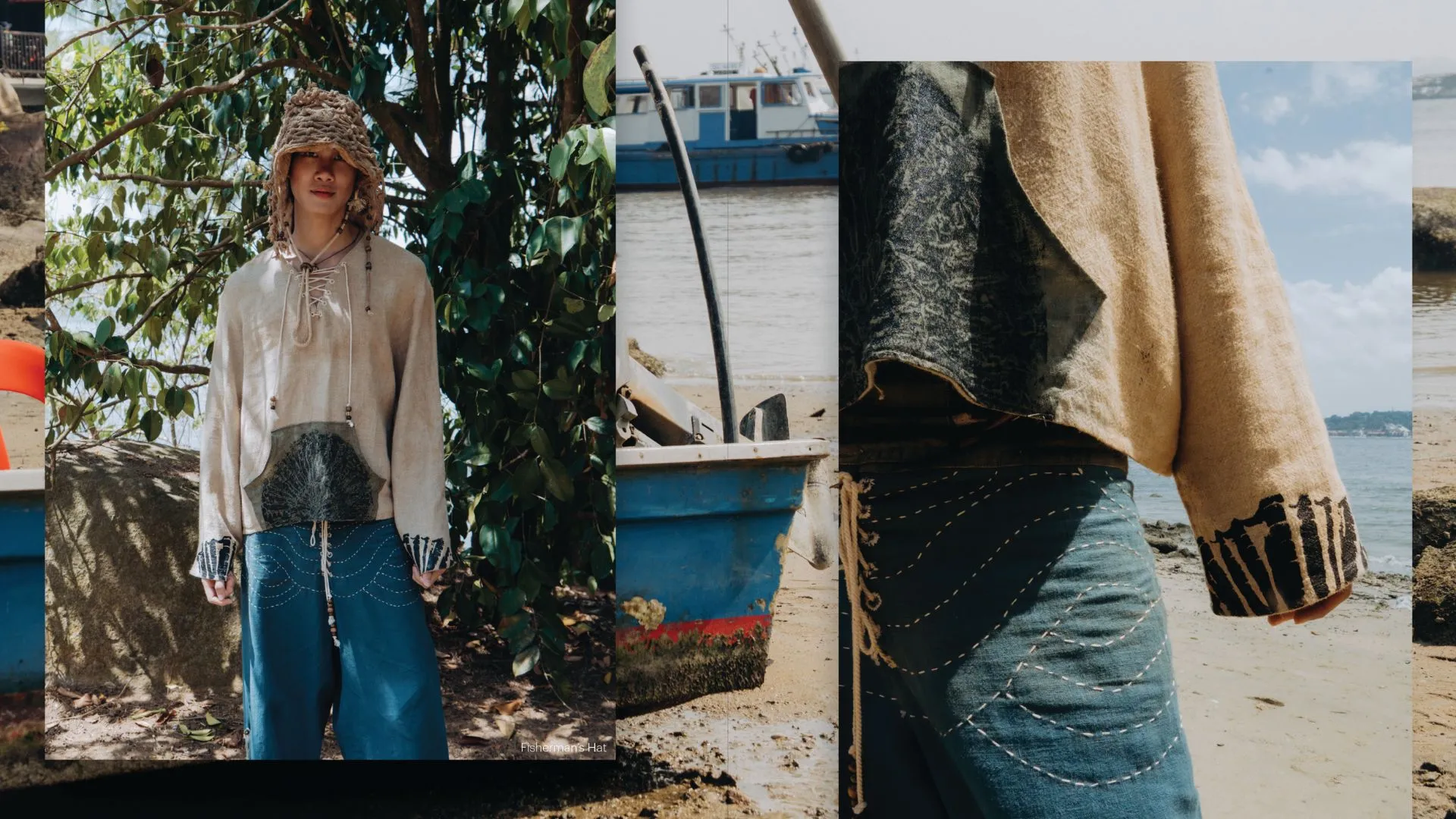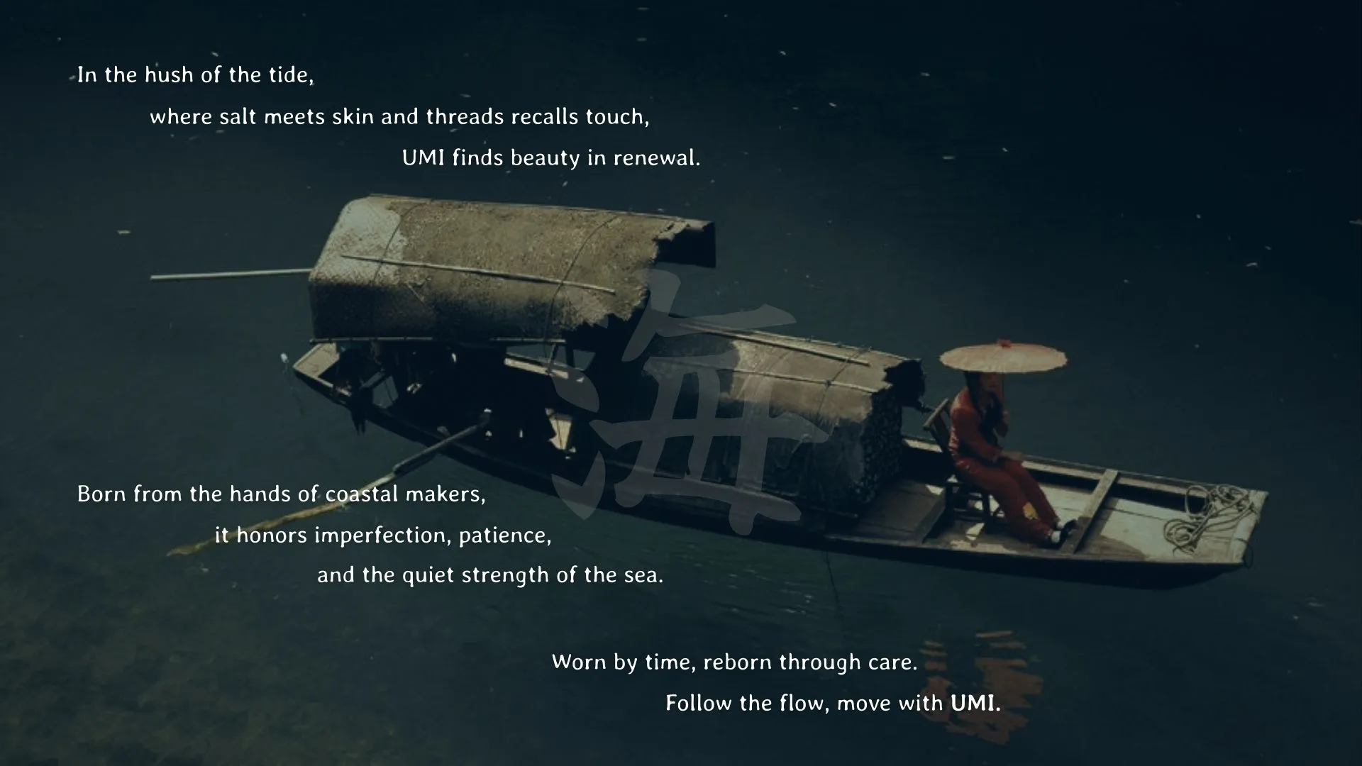 UMI ‘海,’ meaning “sea” in Japanese, is a contemporary utilitarian brand inspired by the resilience and humility of coastal communities. Honouring artisanal craft, it transforms mending into a ritual of care, where every stitch reflects patience, connection, and harmony with nature. Imperfections become beauty, and touch carries memory.