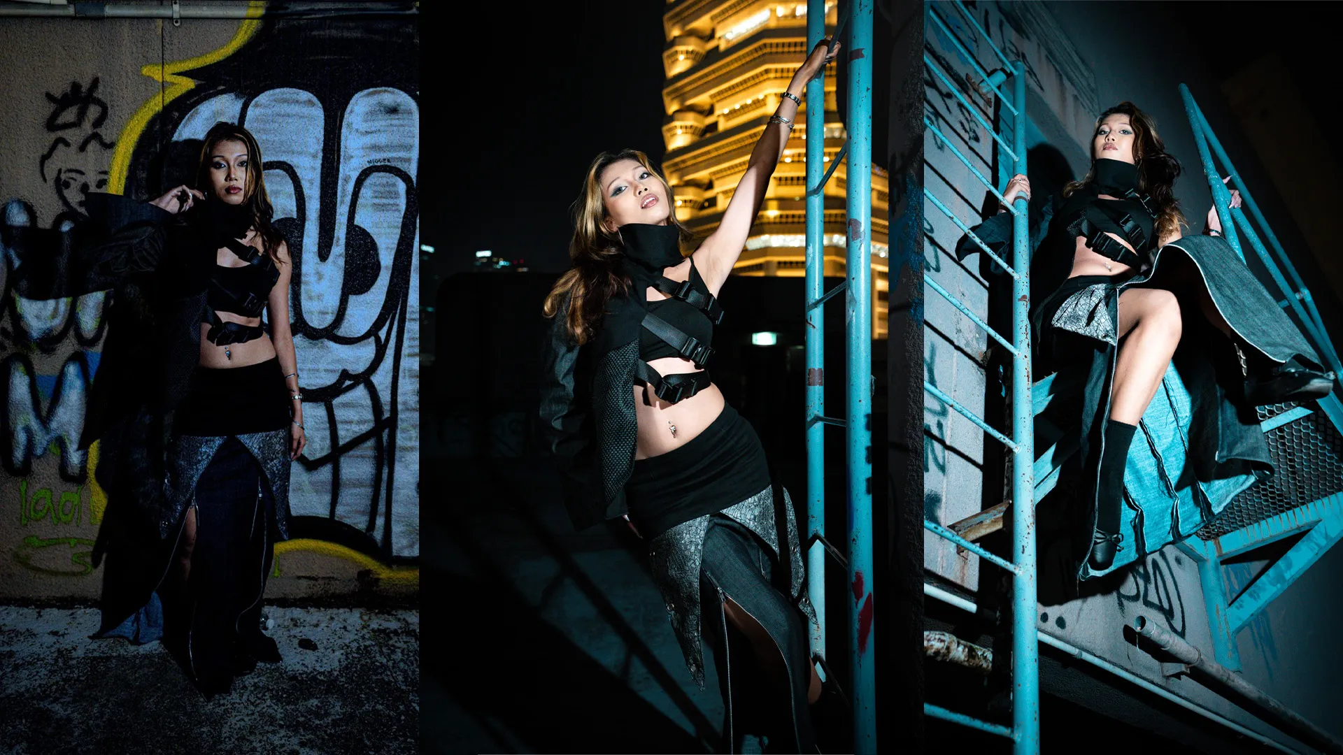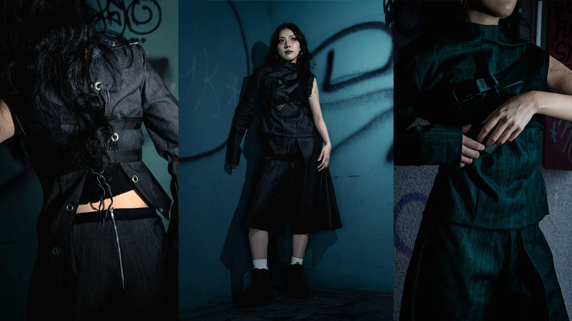 SELF//CONSTRUCT explores the freedom found in dismantling the systems that define us. If meaning is not inherent, then identity can be found through an act of creation. A modular form constantly rebuilt through choice, experience, and rebellion. The garments act as evolving frameworks. Asymmetrical cuts and layered geometry that move between order and distortion. Each look is engineered for adaptability, a wearable blueprint of transformation. Rooted in urban nihilism and self-liberation, SELF//CONSTRUCT turns detachment into design and uniformity into individuality.