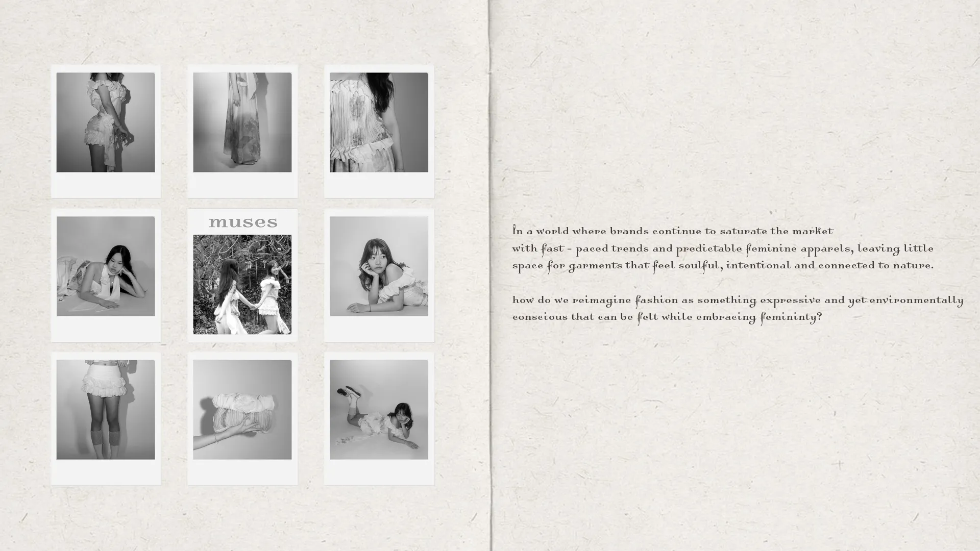 MUSES is a contemporary occasion-wear brand specialising in creating feminine, ethereal apparel featuring natural dyeing, textile manipulation, and unconventional, delicate silhouettes. Deeply inspired by nature and its quiet growth, MUSES seeks to rediscover the harmony and craft within the natural world. Offering pieces that feel alive, soft, and deeply personal. In life’s relentless rush, we often forget to pause, wandering from trend to trend, and in the process, losing touch with our soul and the essence of who we are.