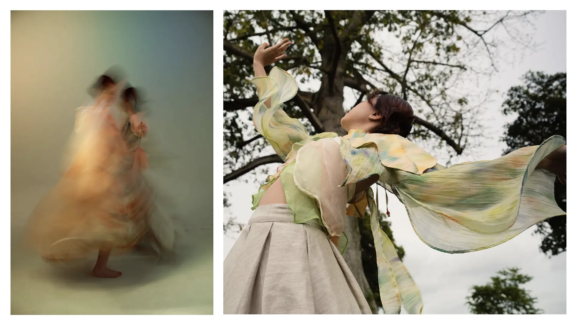 XING熙 is a collection marked by sentiments about the impermanence of memories preserved as mental fragments. Memories exist as sensory and emotional fragments reconstructed as a haze that is distorted and incomplete. These fragments are emotional signifiers carrying different emotional frequencies. It creates an abstract realism through the emotional landscape by manipulating psychological acceptance, finding beauty in transience to acknowledge impermanence. The fragments become an emotional fossil proving our existence in a moment. They are not remnants but continuations to ensure the emotions that once lived still echoed through us, to be felt.