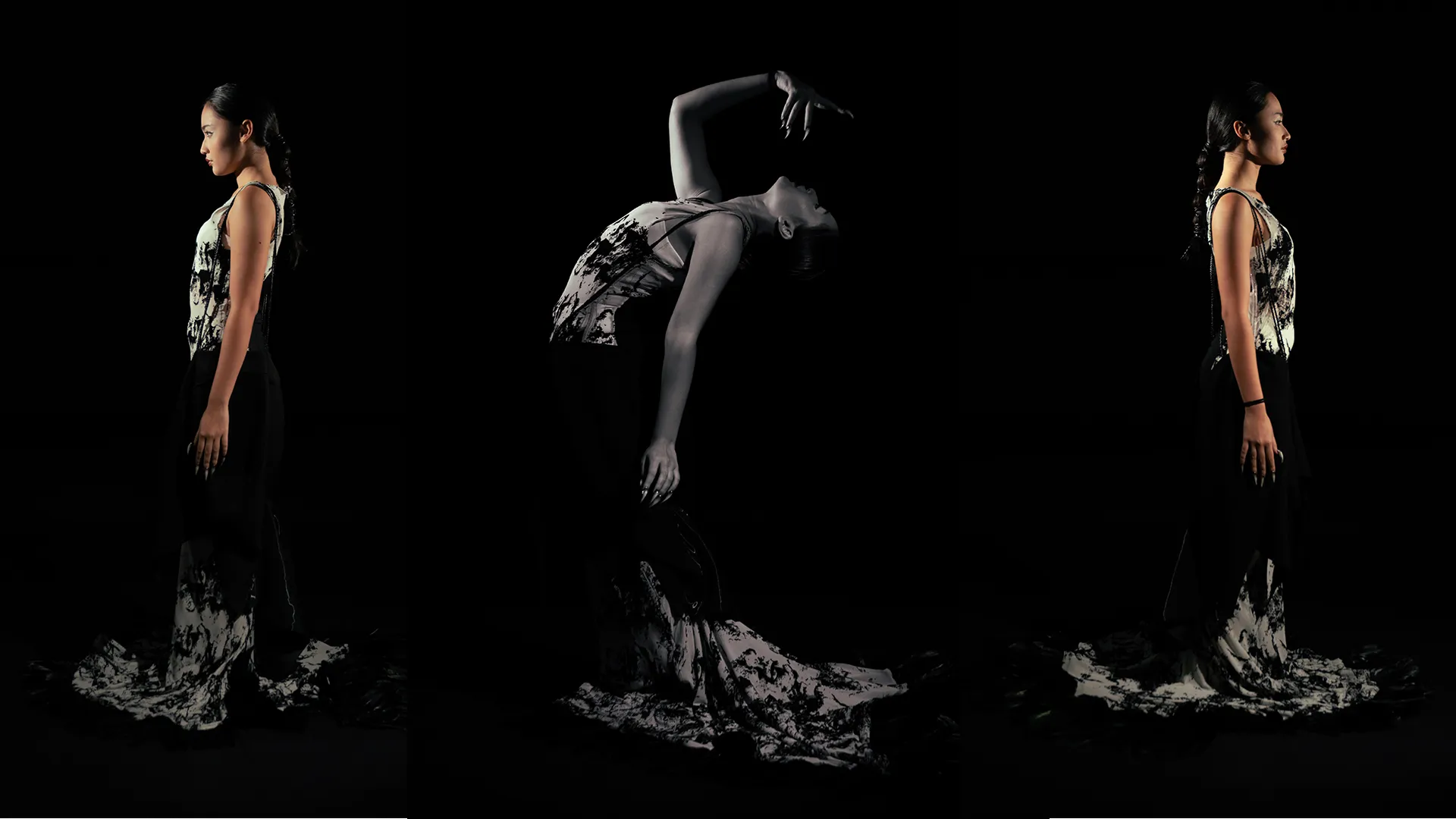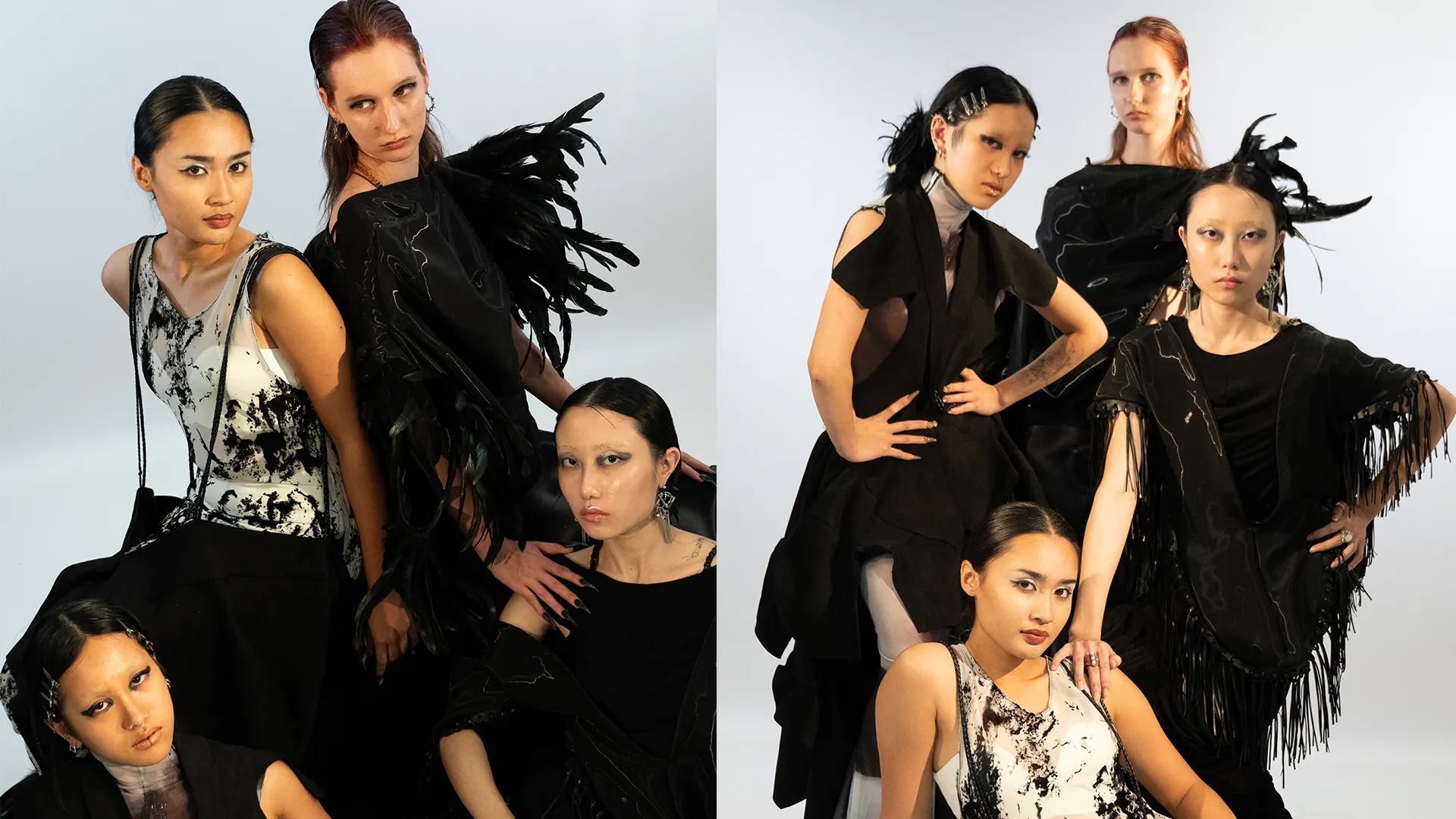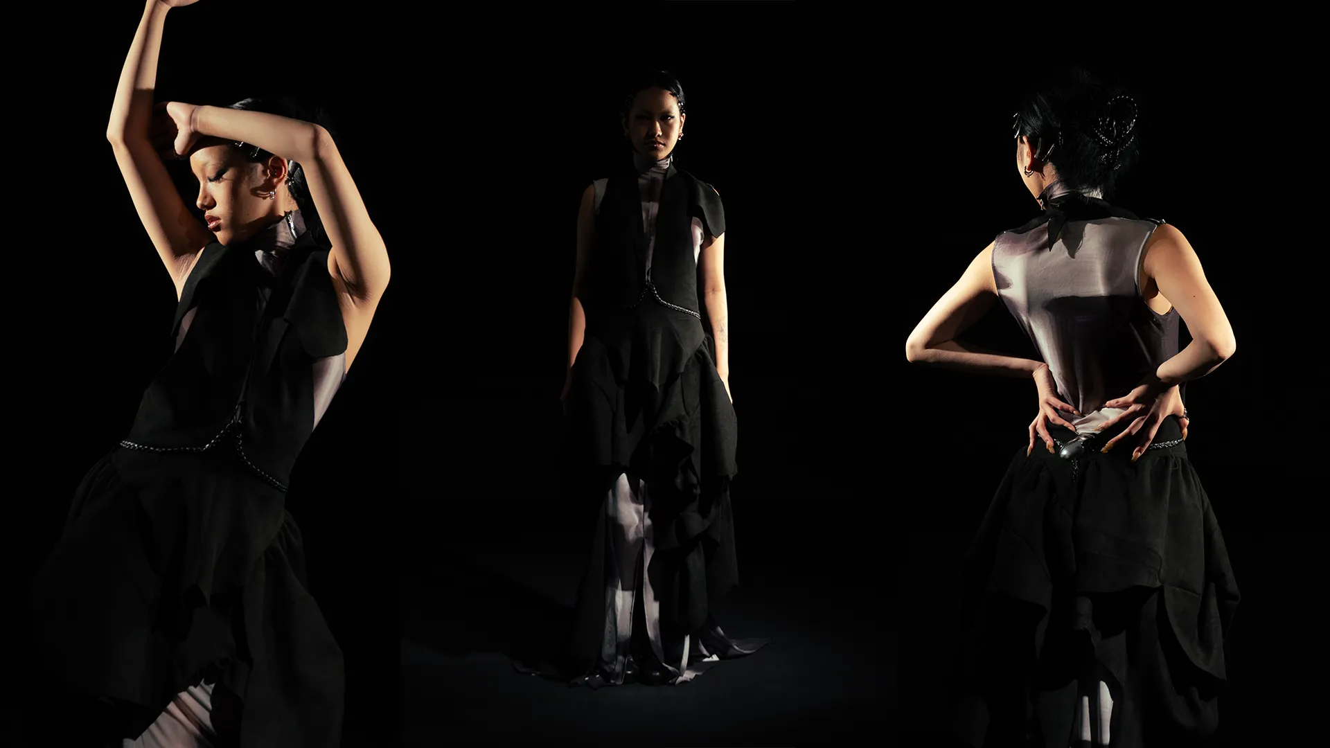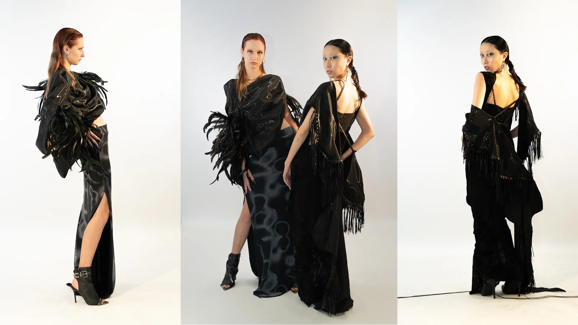Through the exploration of zero-waste pattern cutting in CLO3D, animalistic silhouettes are morphed into controlled drapes that contour the human form. Instinct and intellect collide in a mirrored tension-restraint and release existing in constant negotiation.