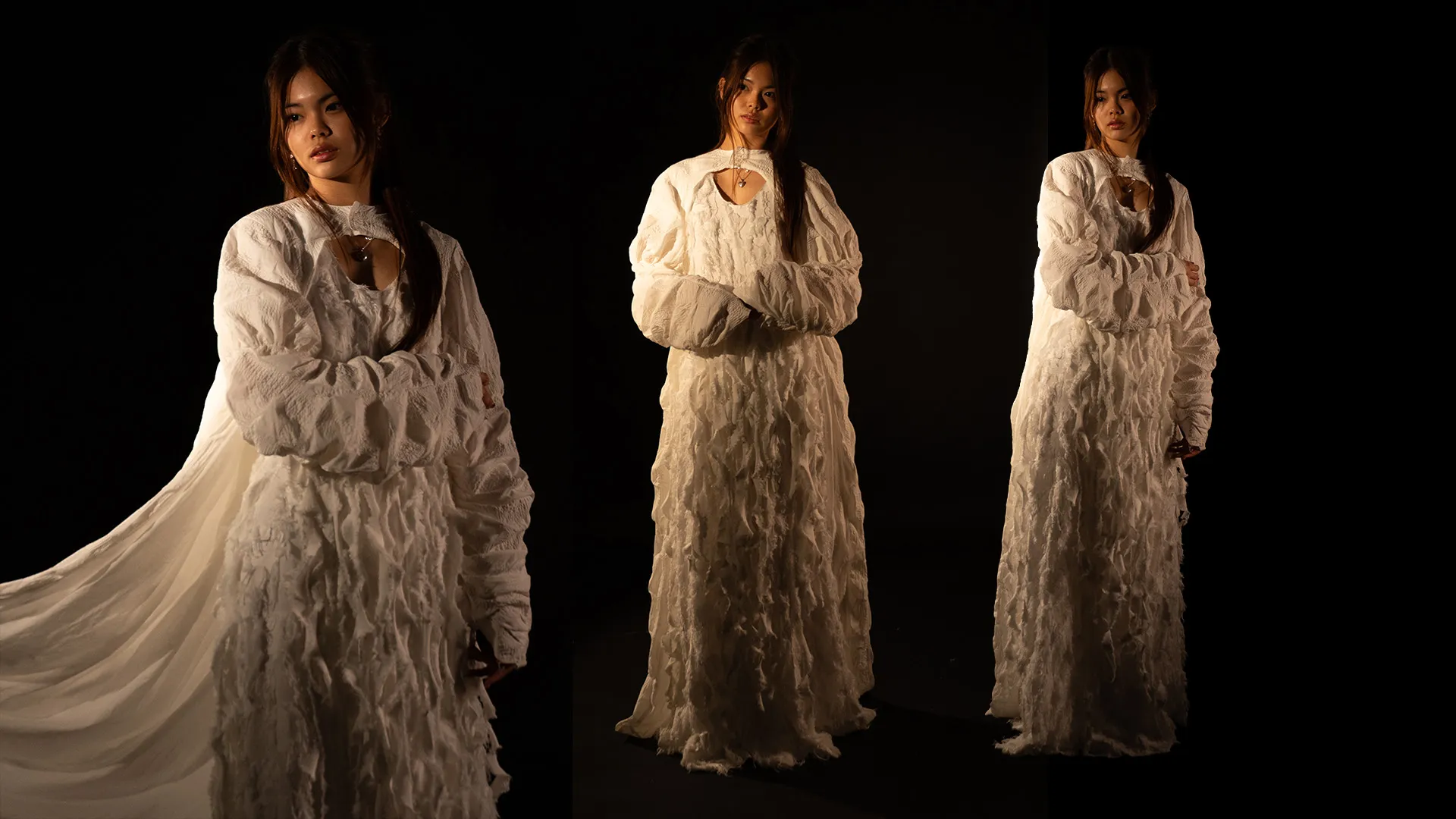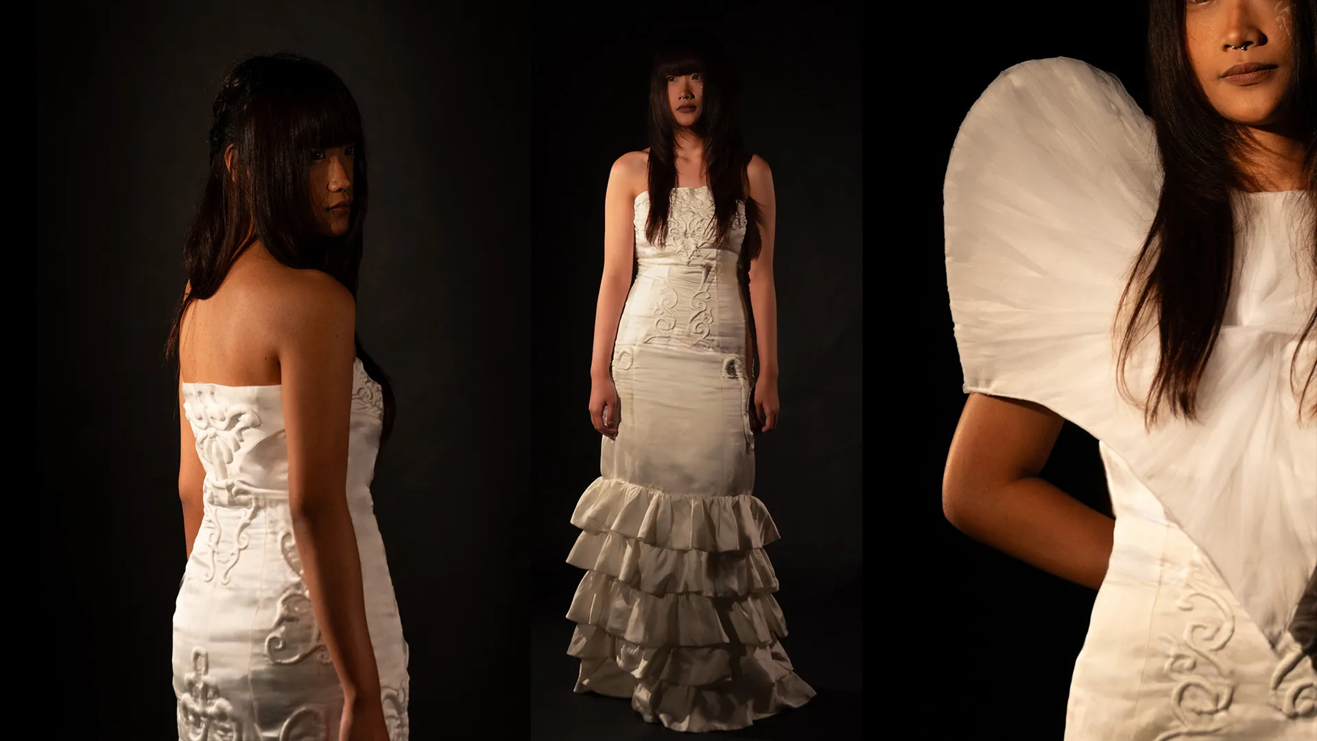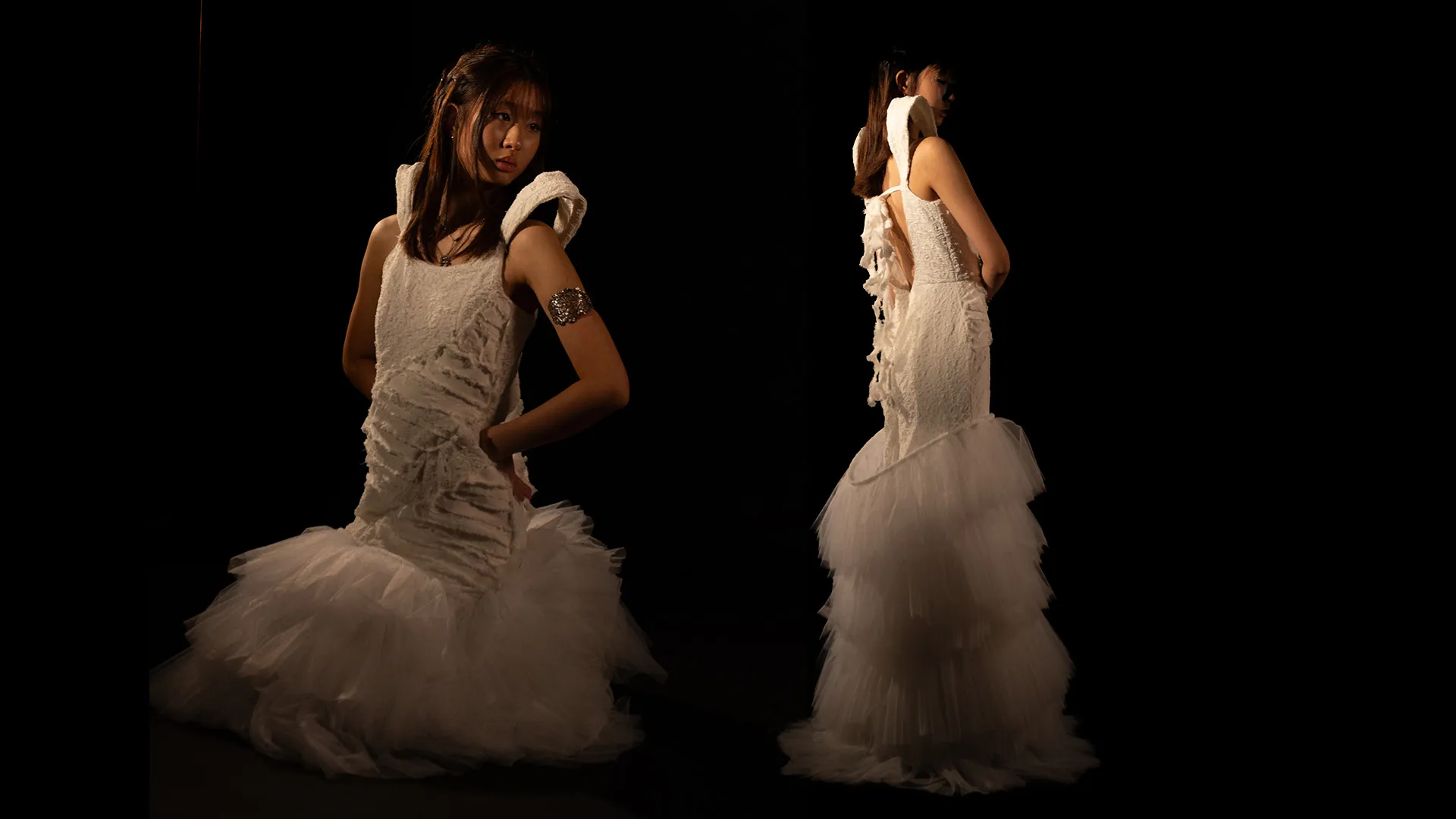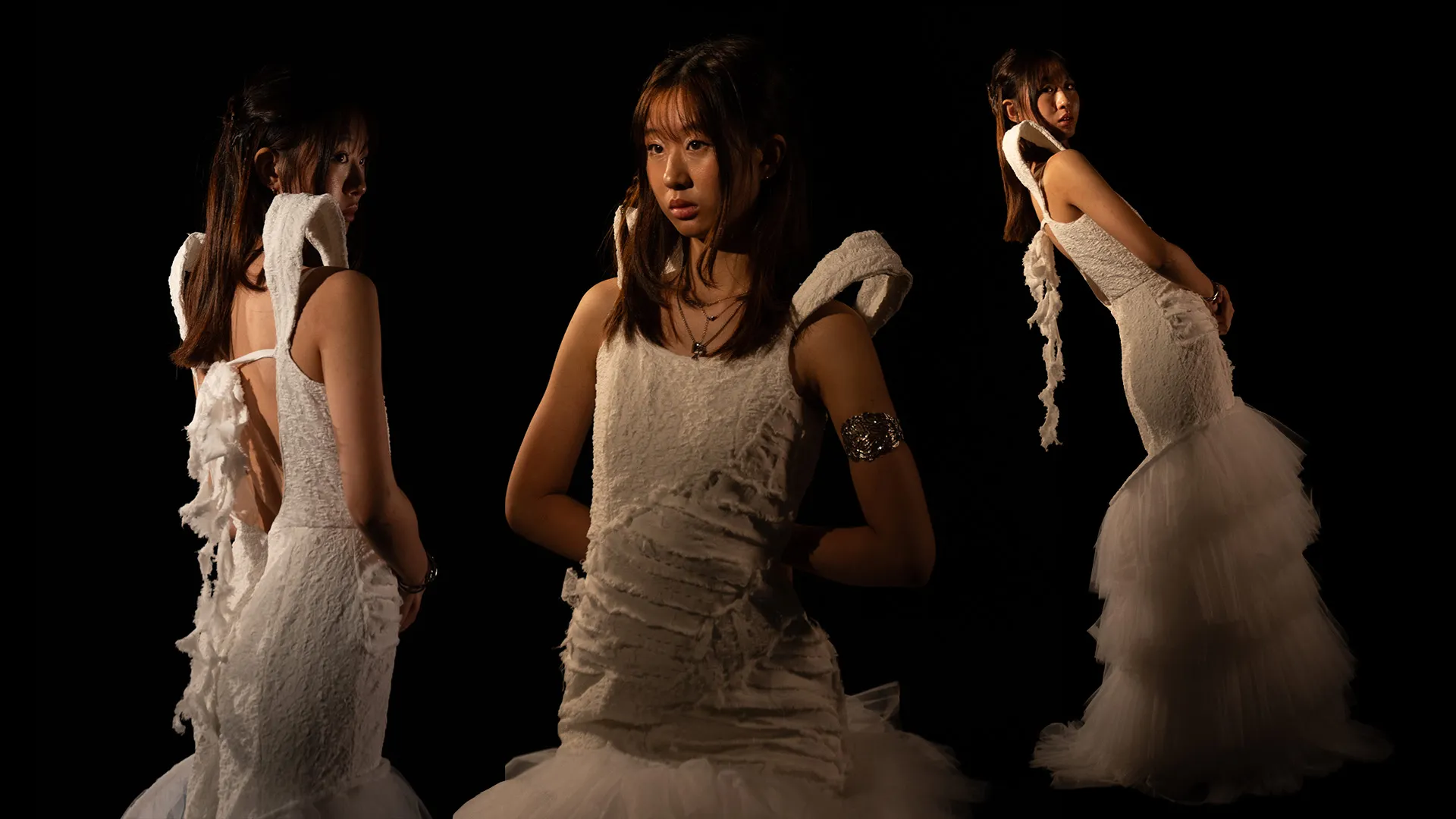 Hi, I am Jolie Ng. I am drawn to storytelling through my garments, exploring the juxtaposition of themes inspired by mythology, music, life philosophies, my dreams, and my everyday experiences. I enjoy experimenting with textile manipulation to shape emotion into form. For me, fashion translates the intangible into wearable art, a medium to express what is difficult to put into words, to encapsulate a feeling or a fleeting thought. Through my work, I hope to create an introspective experience that invites others to look within.