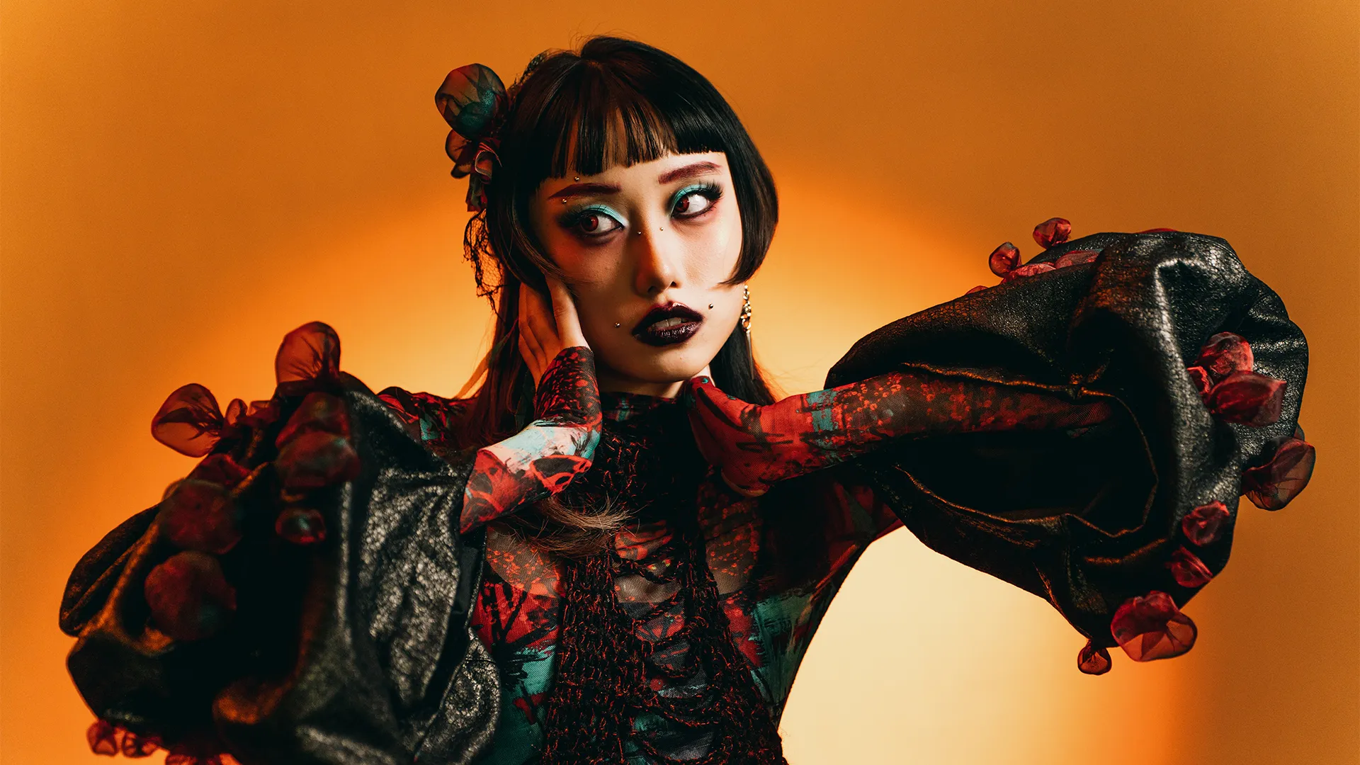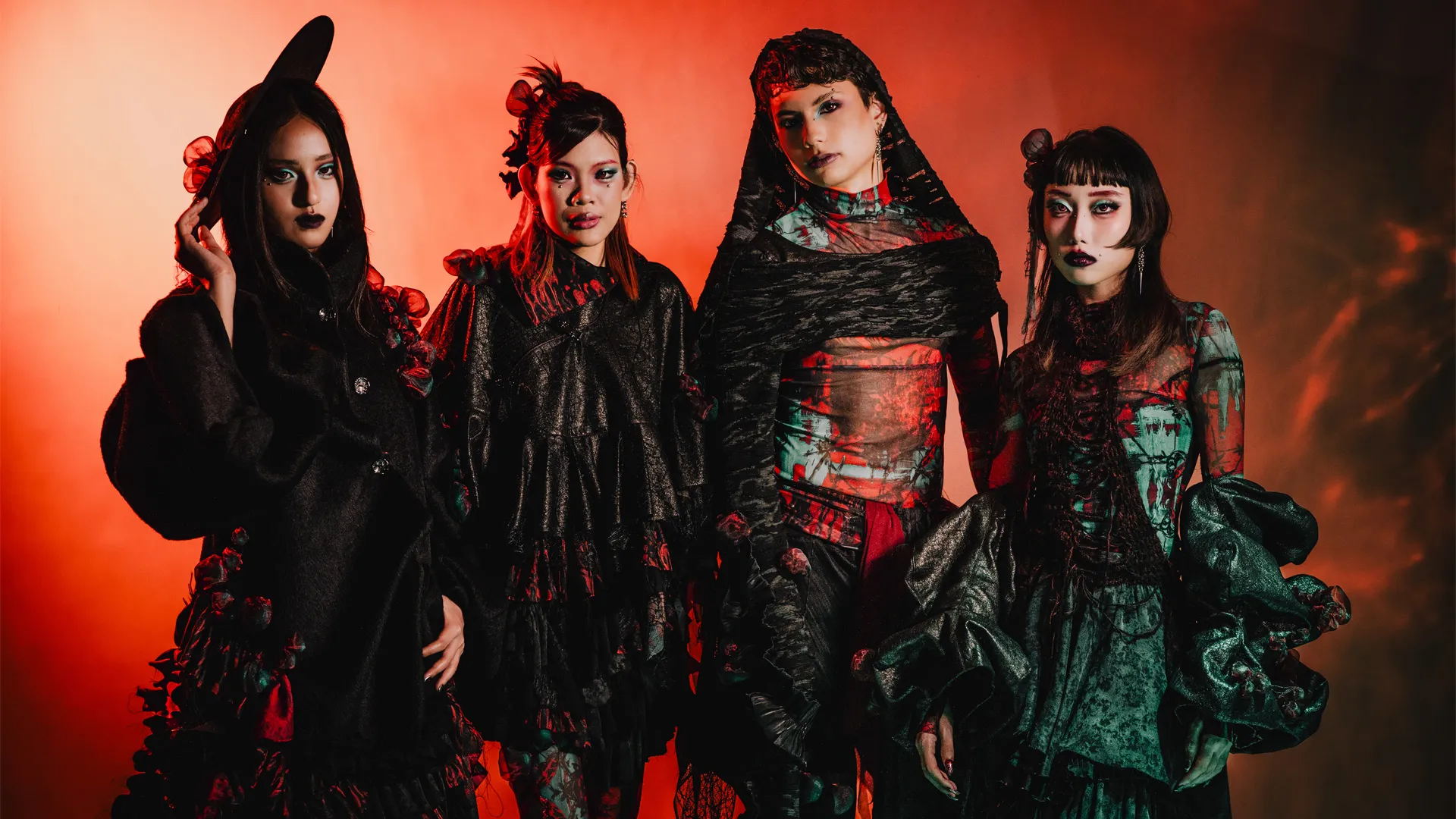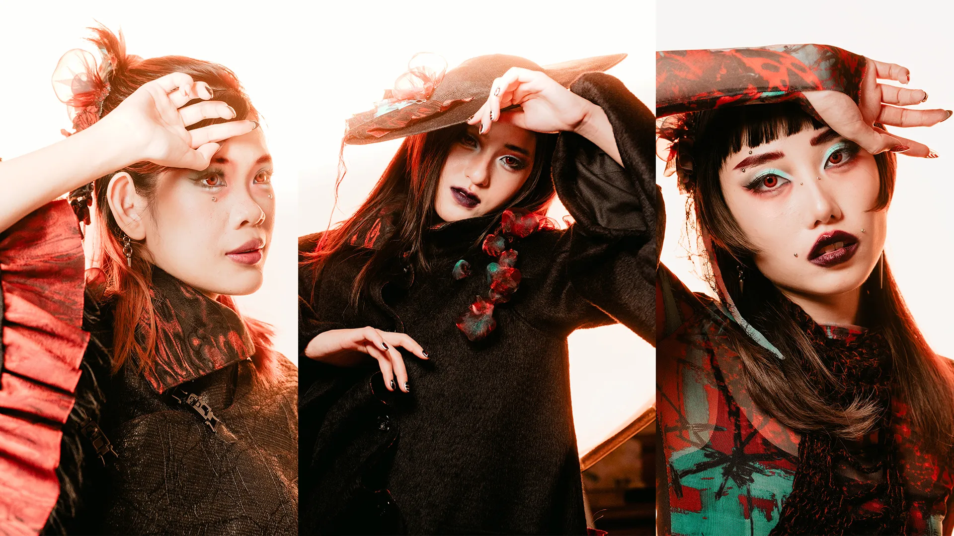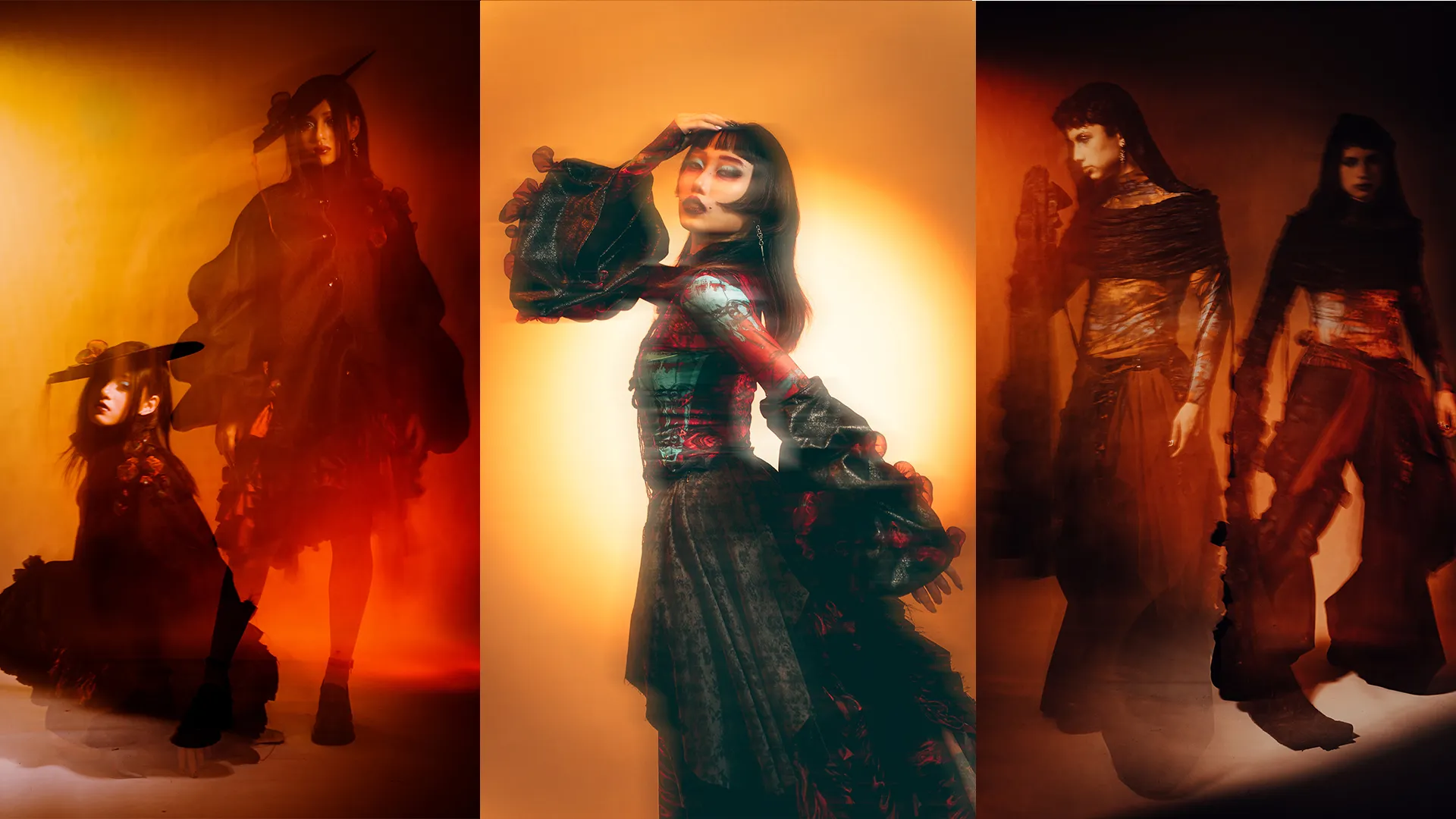 1RRAD1AT3D: is a collection set in a post–nuclear winter landscape, exploring the aftermath of human conflict through fashion as storytelling. Each couture piece reflects the physical and psychological scars of radiation on human, animal, and plant life, transforming garments into performance art.