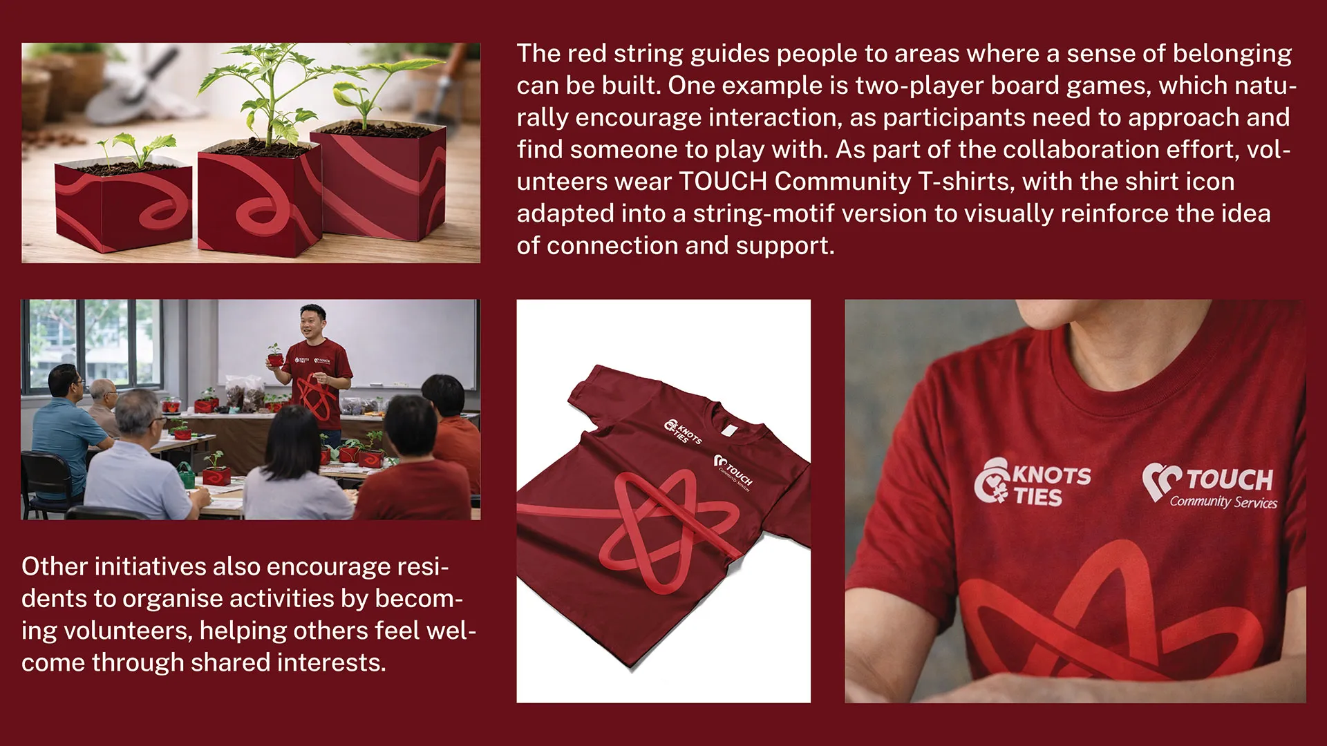Knots & Ties responds to this tension by exploring how simple actions can reduce the awkwardness of interaction and help people recognise the value of community. It views each interaction as a thread, where repeated moments of connection form knots and ties that gradually make up the community.