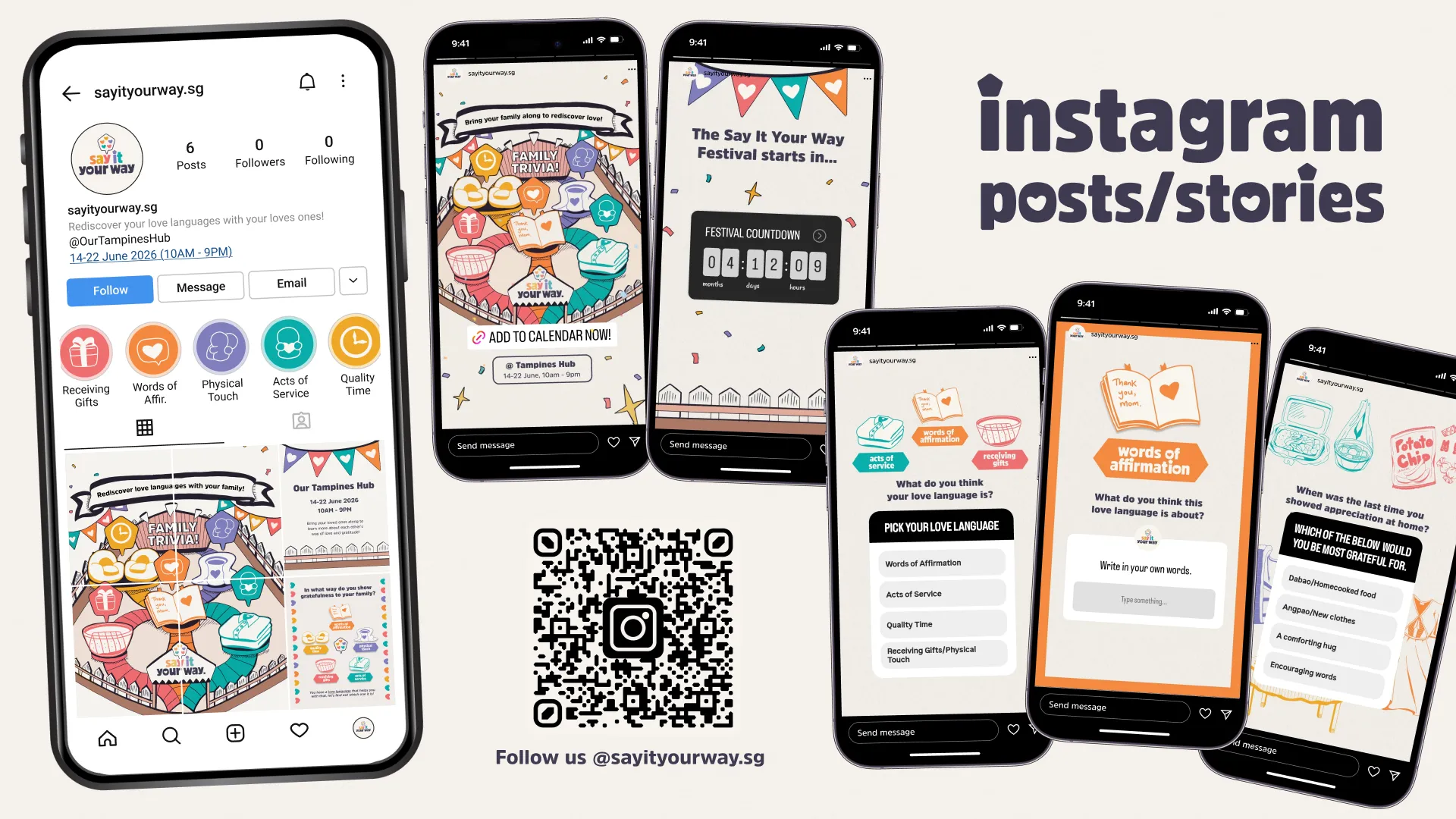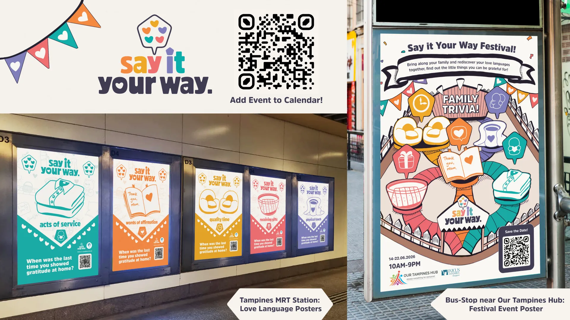 Say It Your Way explores how love and gratitude are expressed within Singaporean families. While care is often present at home, emotional expression can fade with familiarity, leaving everyday acts of love unnoticed or unreciprocated. This project addresses the gap between intention and expression by reframing love through the five love languages, with a focus on quiet, indirect gestures commonly practised in Asian households.