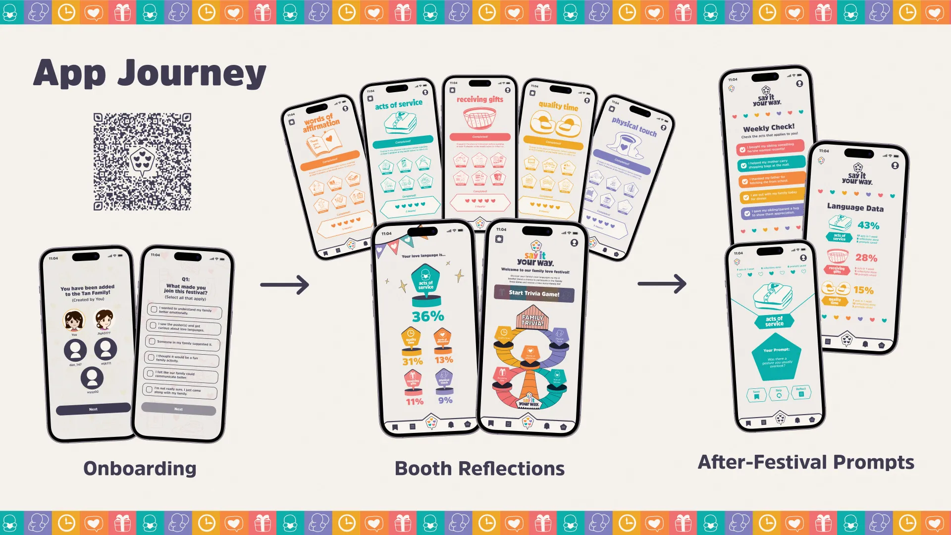 The outcome is an interactive family festival supported by a mobile application, where participants engage in reflective activities represented by familiar household objects. Through shared experiences, guided prompts, and light interactions, families are encouraged to recognise, appreciate, and reciprocate the love that already exists at home. Rather than instructing families on how to love, the project creates a safe, non-awkward space for emotional awareness and reconnection. Ultimately, Say It Your Way aims to restore warmth at home by empowering young adults to initiate gratitude and affection in ways that feel natural to them.