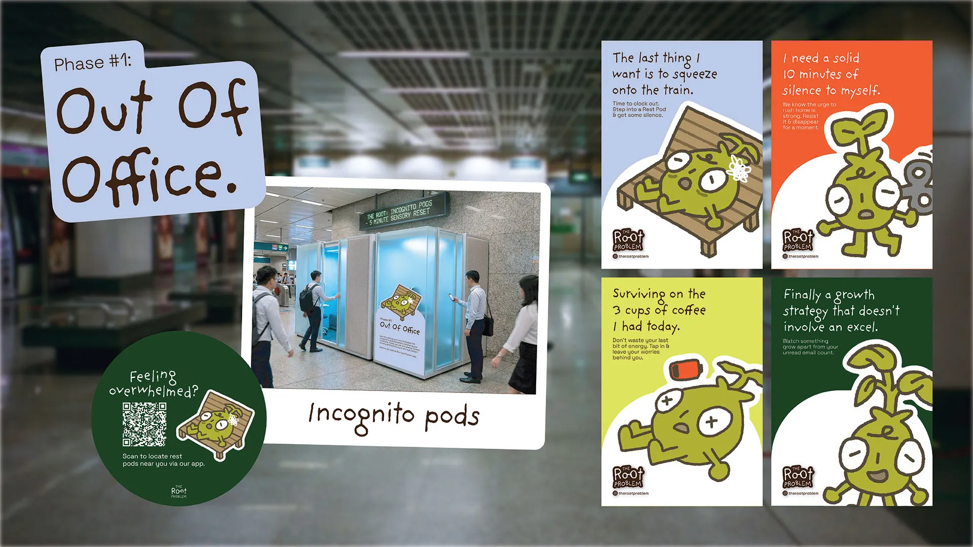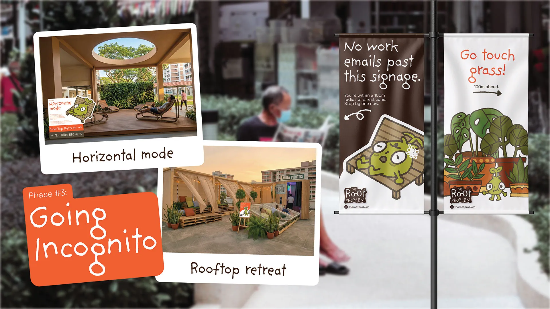 The Root Problem is a spatial manifesto that reclaims Singapore’s third spaces to disrupt this cycle. By transforming various areas along the commute home, the project helps physically strip away the urban hum. It serves as a gentle interruption, challenging commuters to break out of their routines and remember they are living organisms that need to rest.