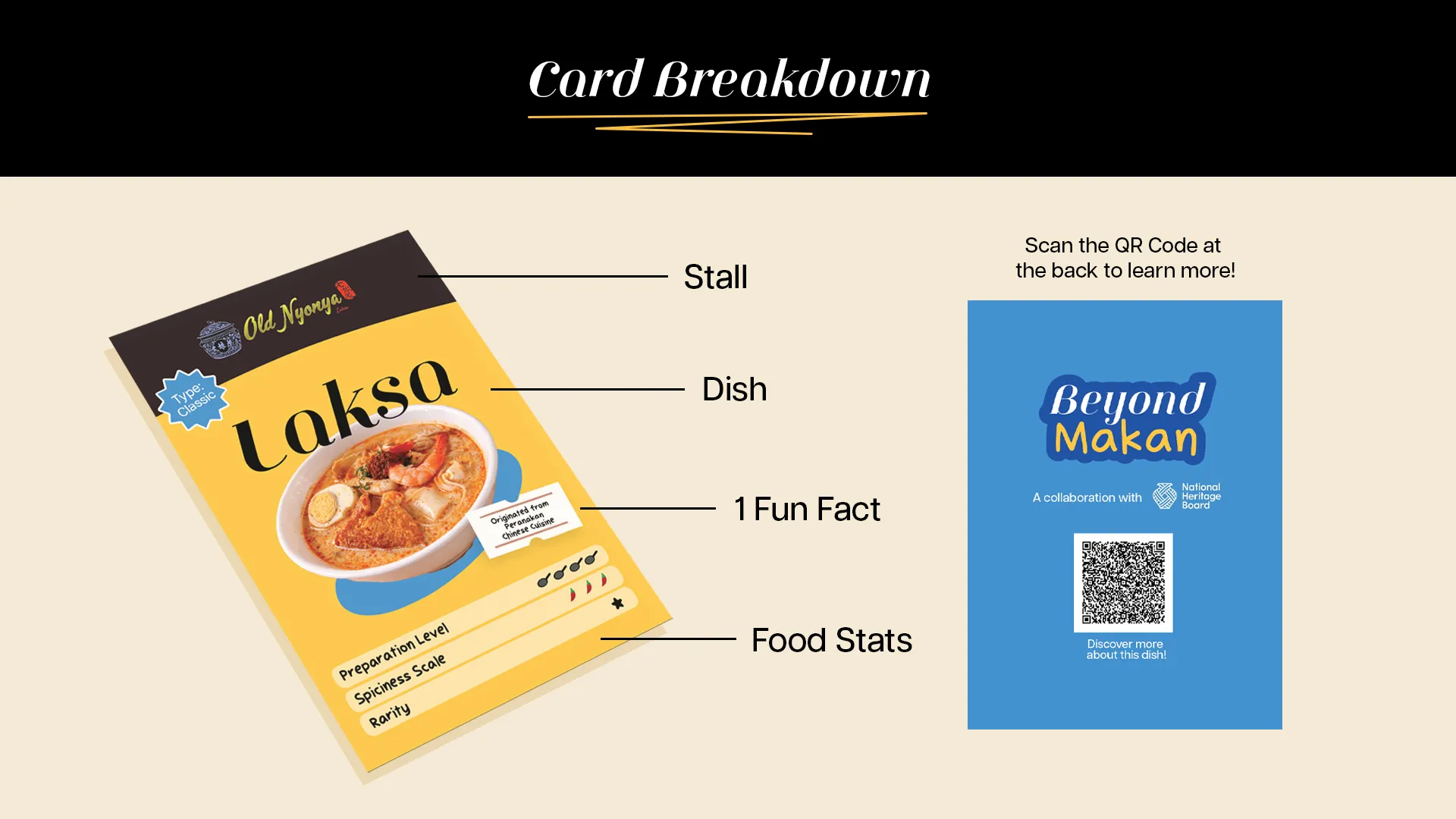 Beyond Makan is a campaign in partnership with the National Heritage Board that seeks to recognise the deeper significance of hawker food beyond its affordability. Through a series of cards, we invite everyone to explore the stories behind each dish, each hawker, and each hawker centre. These stories continue online, where deeper histories can be explored and personal memories shared as part of a growing archive.