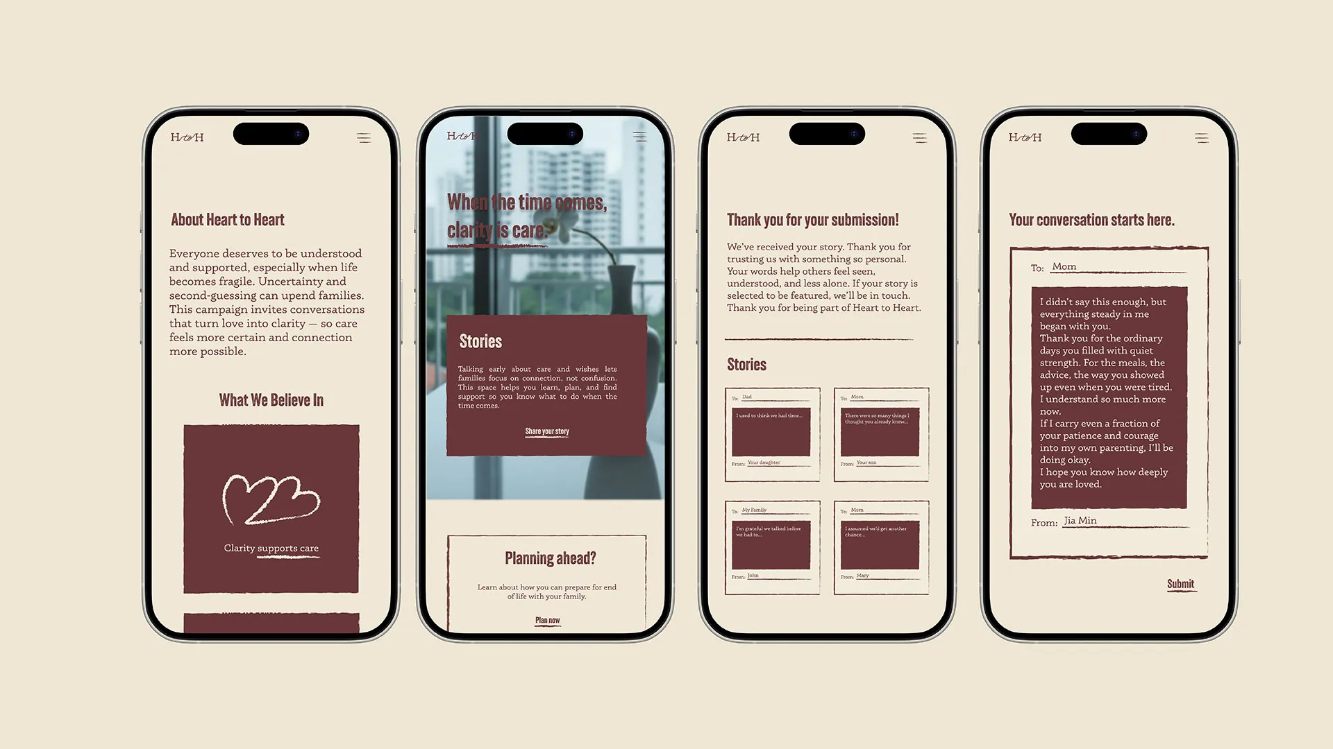 Heart to Heart encourages earlier, more open discussions about end-of-life planning within families. The aim is to reduce uncertainty, strengthen understanding, and help families maintain emotional closeness while time is still available.