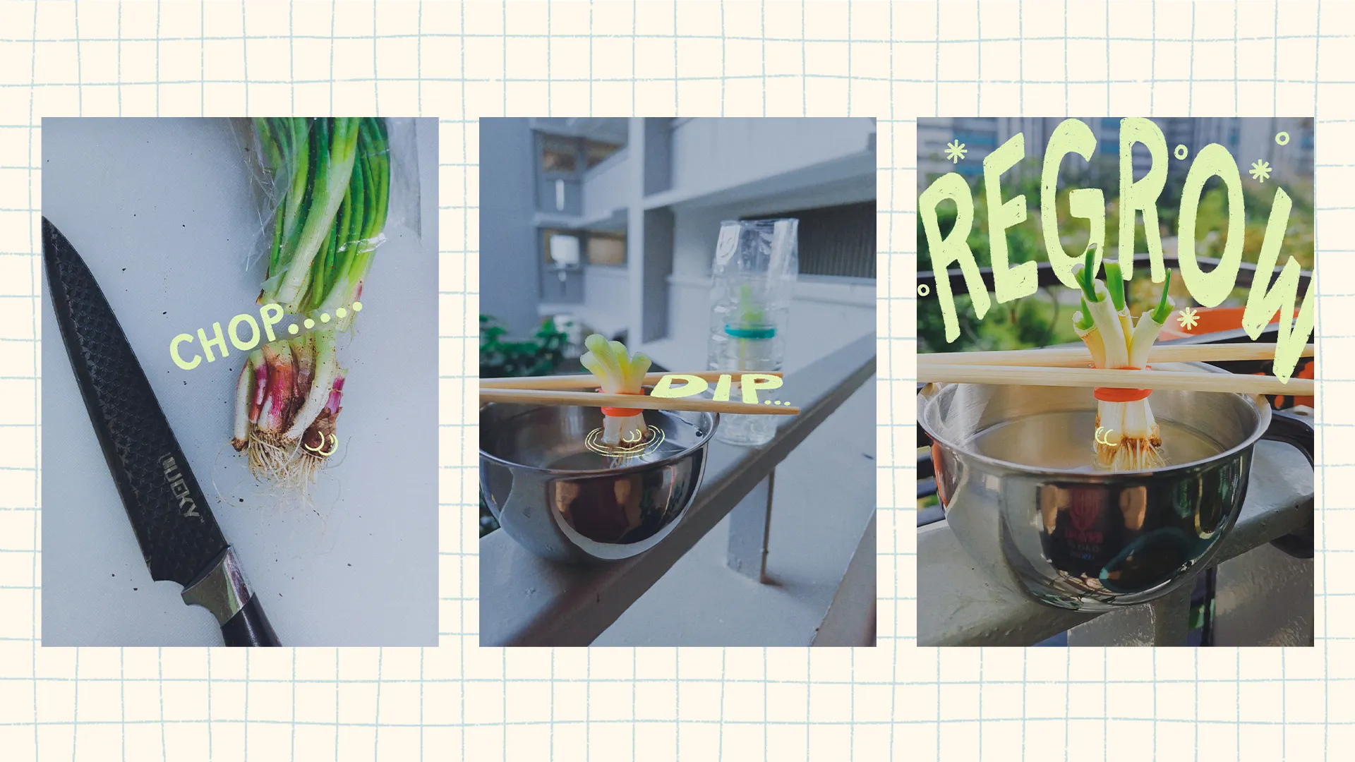 Dip the green onion butt you were about to discard into a cup of water. With time, it regrows fresh green shoots—just like a few other everyday vegetable scraps.
