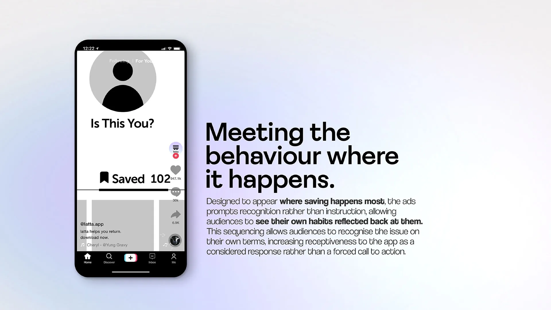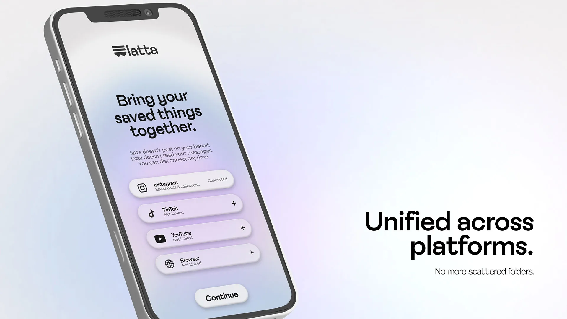 Latta is a companion app concept that reflects on the way we collect videos, posts, and ideas with good intentions. These are things we hope to try, learn, or become, moments we plan to return to, and yet they easily disappear beneath new content. In a landscape shaped by endless scrolling and accumulation, saved posts often become quiet reminders of versions of ourselves we once imagined.