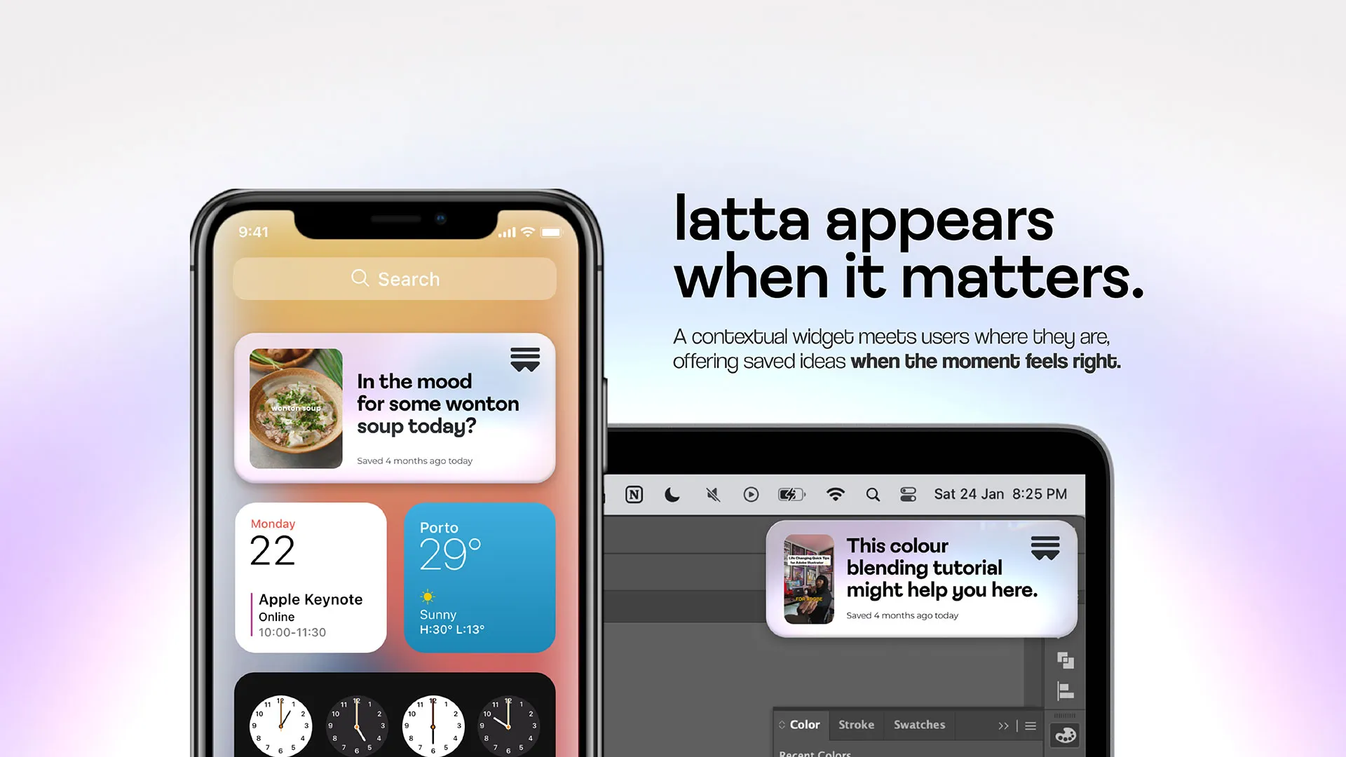Rather than pushing productivity or completion, Latta gently brings these saved moments back into the present when they are ready to be lived. The app reframes saved content not as unfinished tasks but as dreams still waiting to be realised.