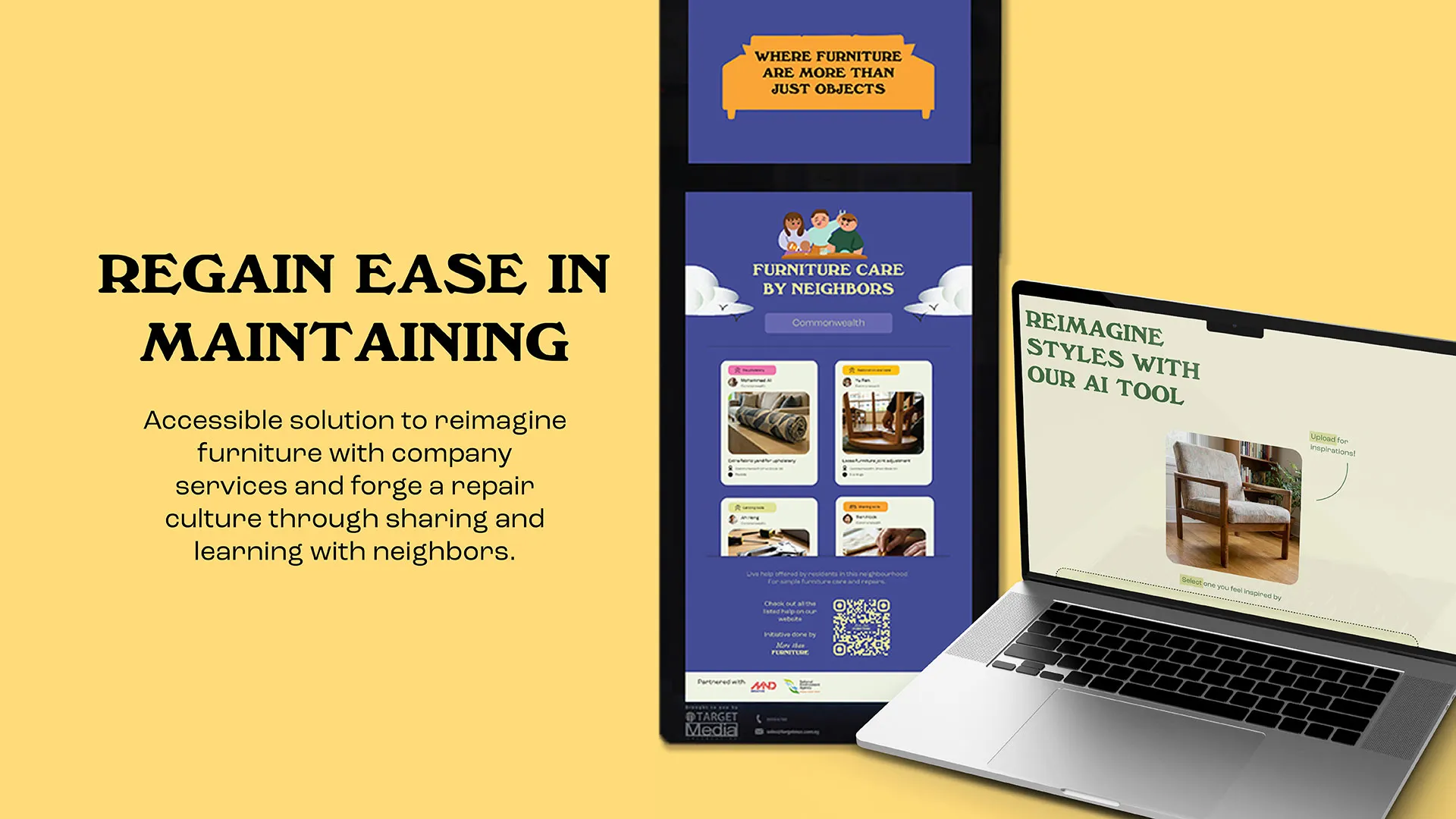 More than Furniture responds to this cycle through a two-way approach. It encourages homeowners to extend the life of their furniture by cultivating emotional value, seeing each piece as something shaped by time, use, and story. This connection is supported through accessible, collective ways to rediscover refurbishing and repair as approachable practices.