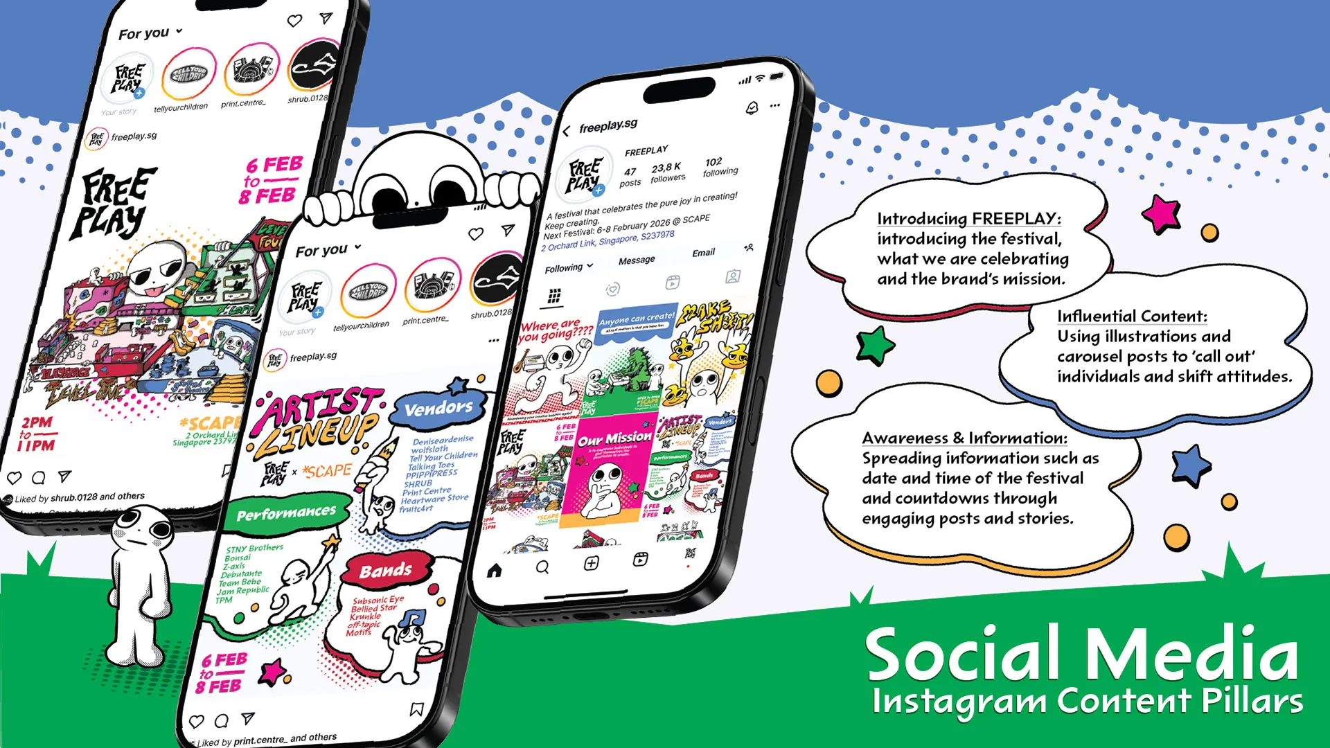 FREEPLAY is a creative arts festival that aims to lower this barrier by celebrating the joy in creating. It serves as a reminder that artistic expression is meant to be fun and experimental first and foremost, offering young adults a starting point to begin their creative journey.