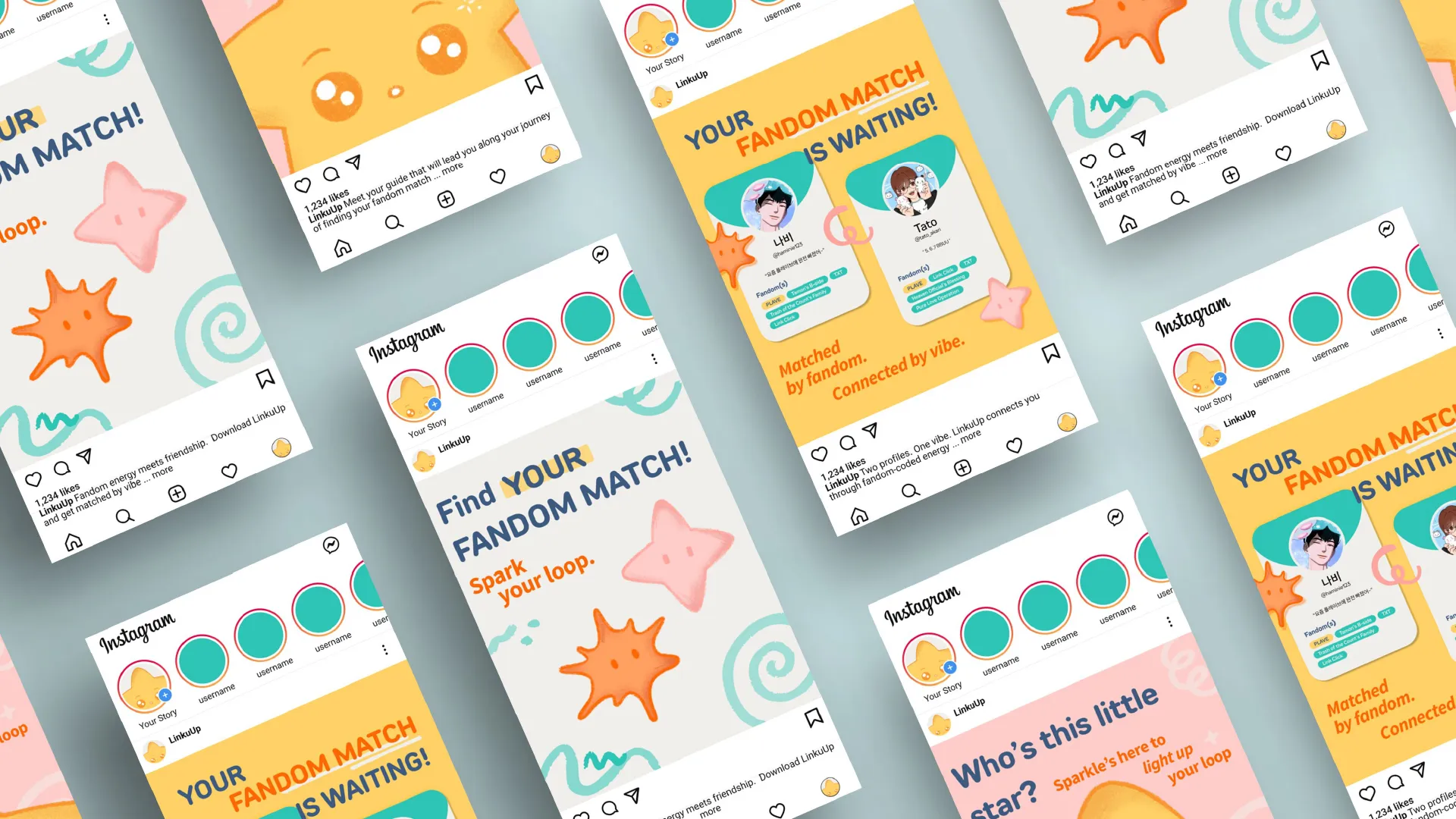 While existing social spaces often prioritise popularity and large, chaotic group chats, LinkuUp focuses on small, emotionally safe circles where fans can connect more meaningfully. Through interest-based matching, verified profiles, and playful icebreaker prompts, users are guided into trusted micro-groups that feel personal and supportive. The app encourages ongoing connection through shared rituals, community spaces, and gentle nudges that keep conversations alive. By reframing online fandom interactions, LinkuUp transforms fleeting engagements into intentional bonds, offering a warm, guided experience where fans can feel seen, understood, and at home among those who share their passions.