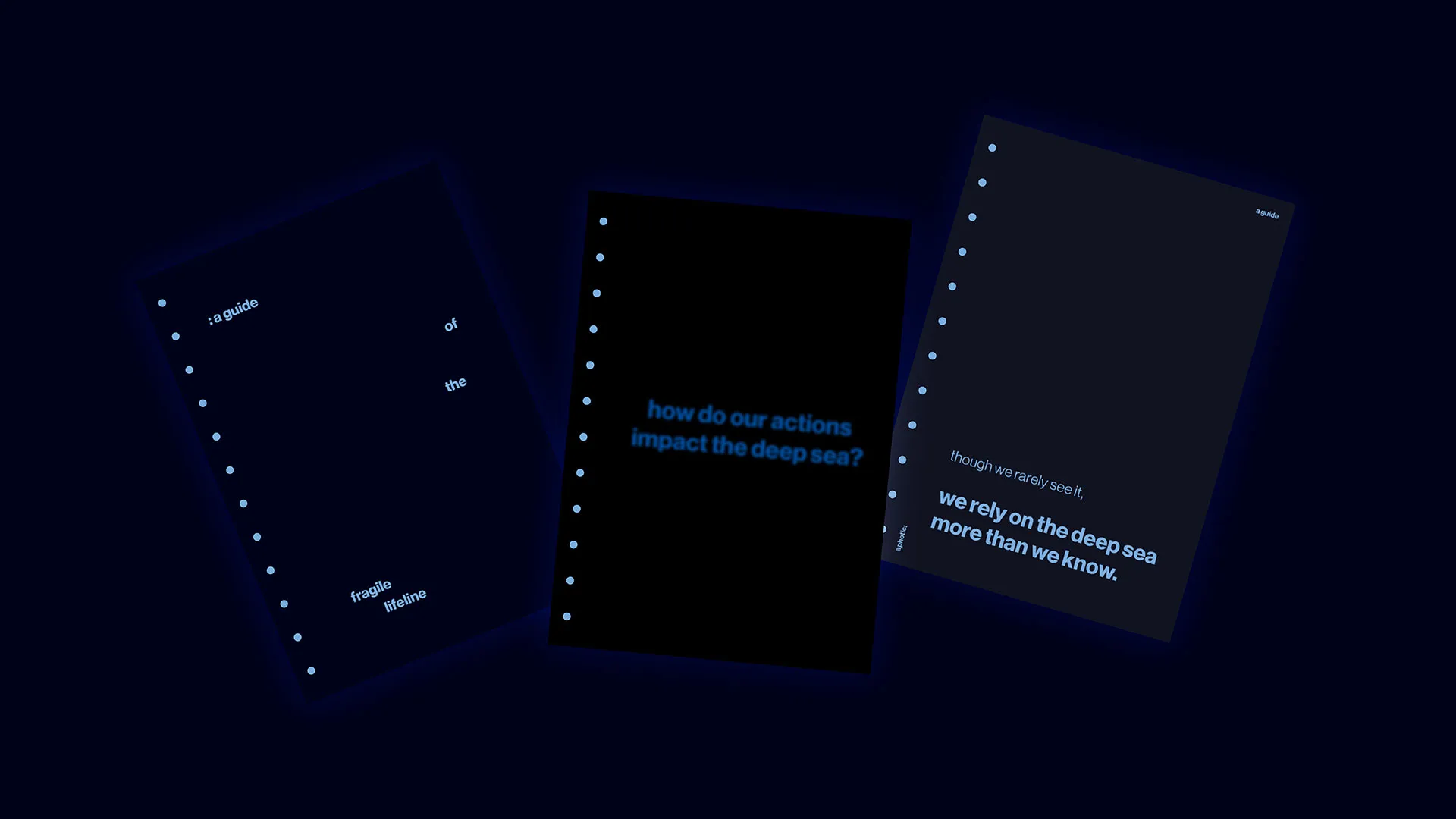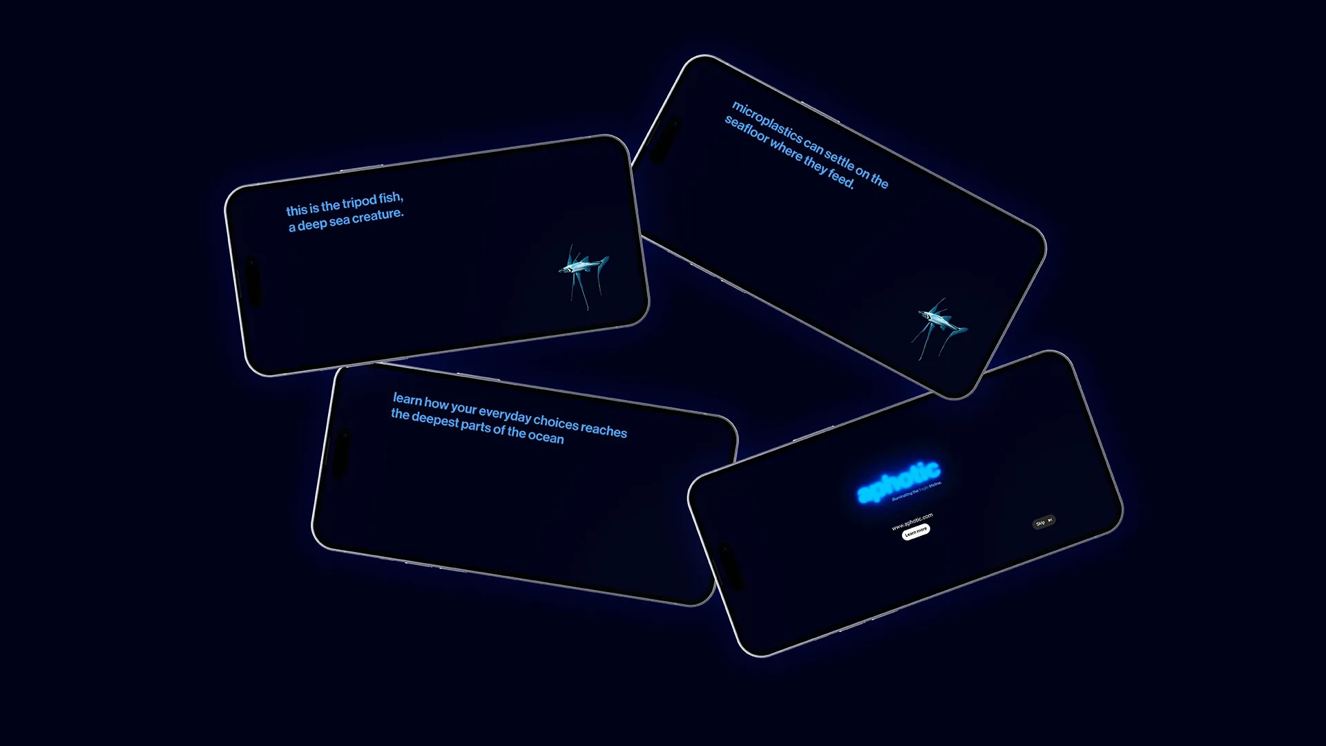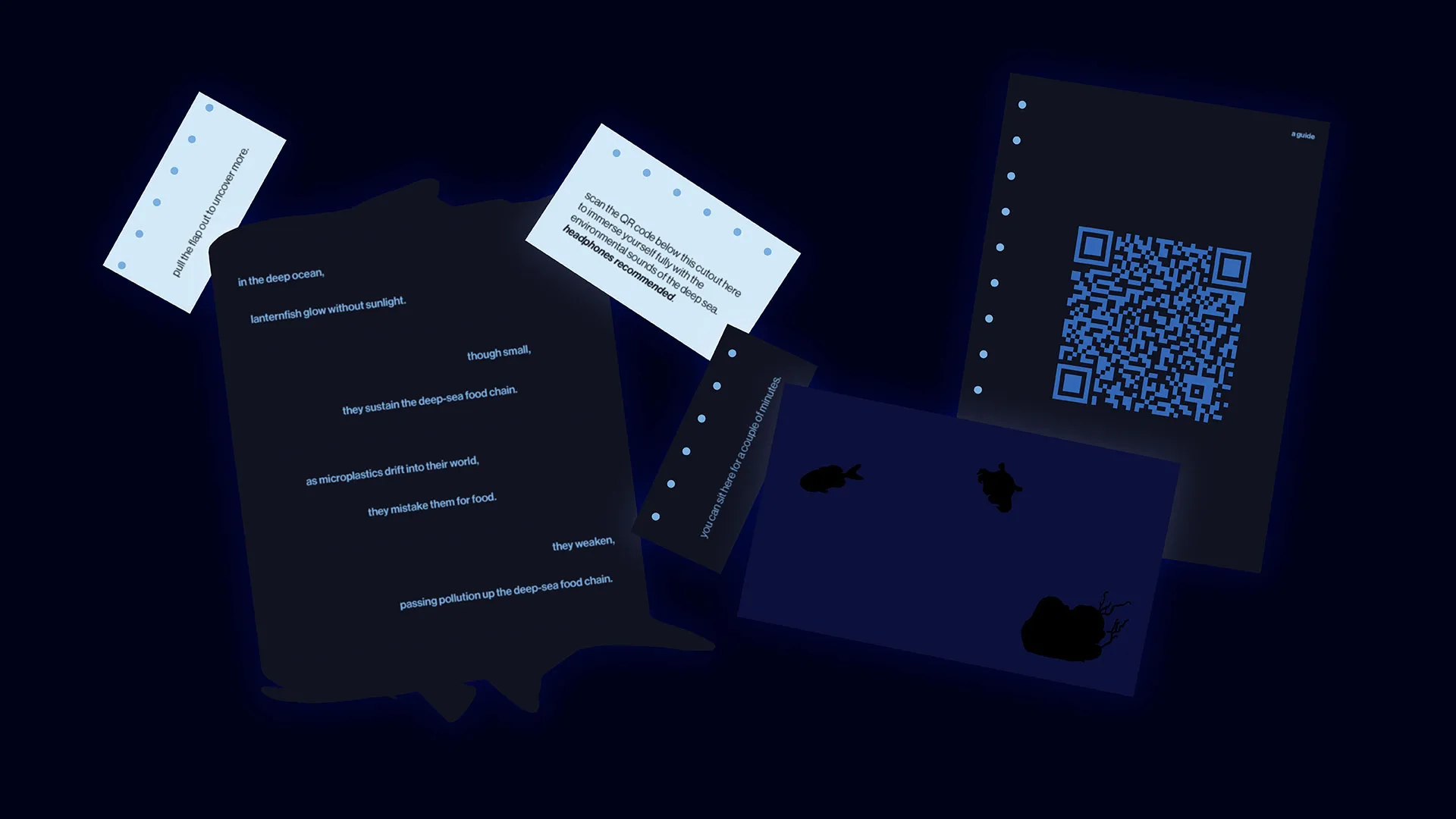 Through gentle illumination, aphotic explores the fragile lifeline, revealing the beauty of deep-sea life while acknowledging a harder truth: human actions at the surface travel far below. By making the invisible visible, this project invites reflection, care, and a deeper awareness of how closely our lives are connected to a world we rarely see.