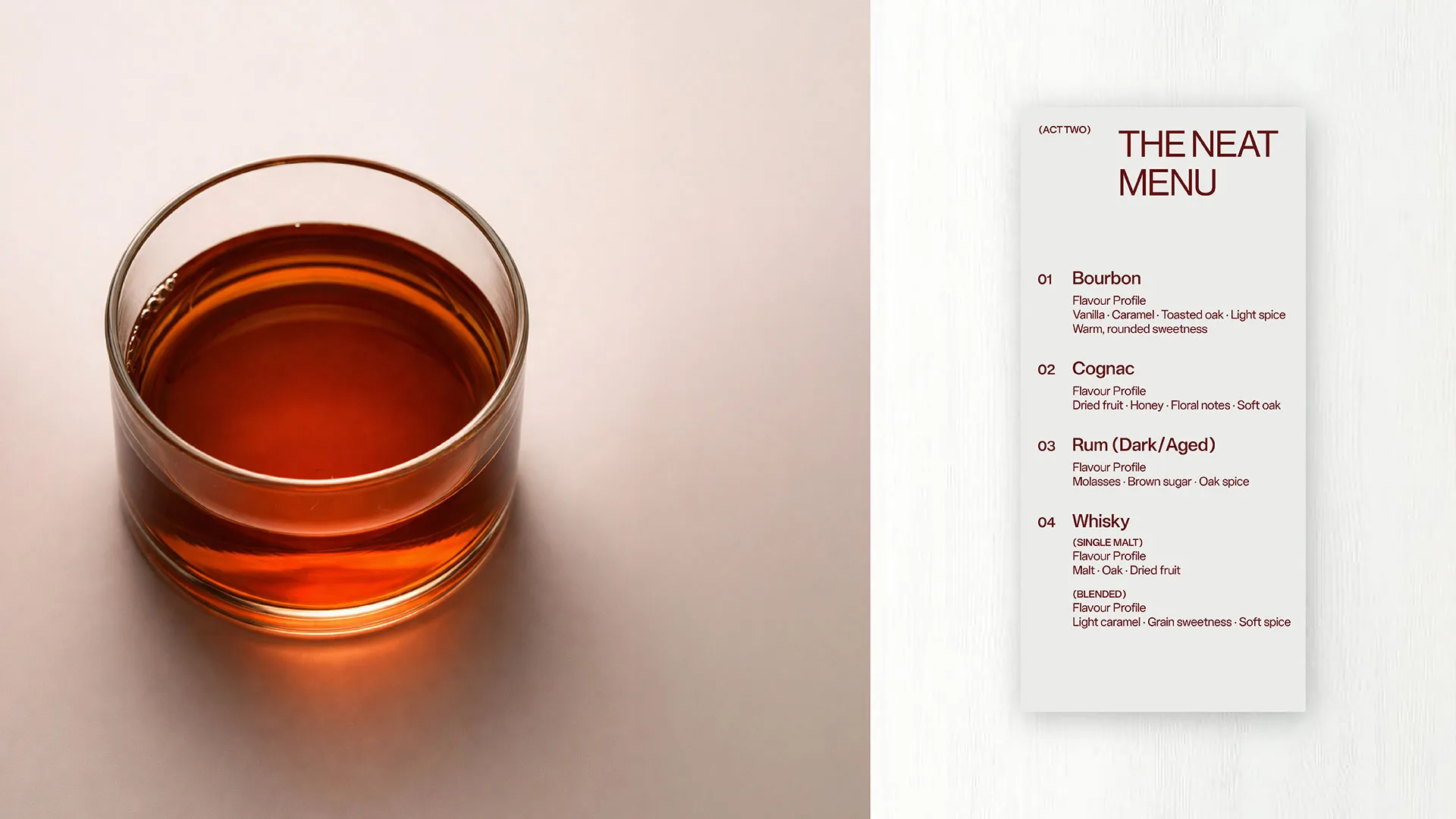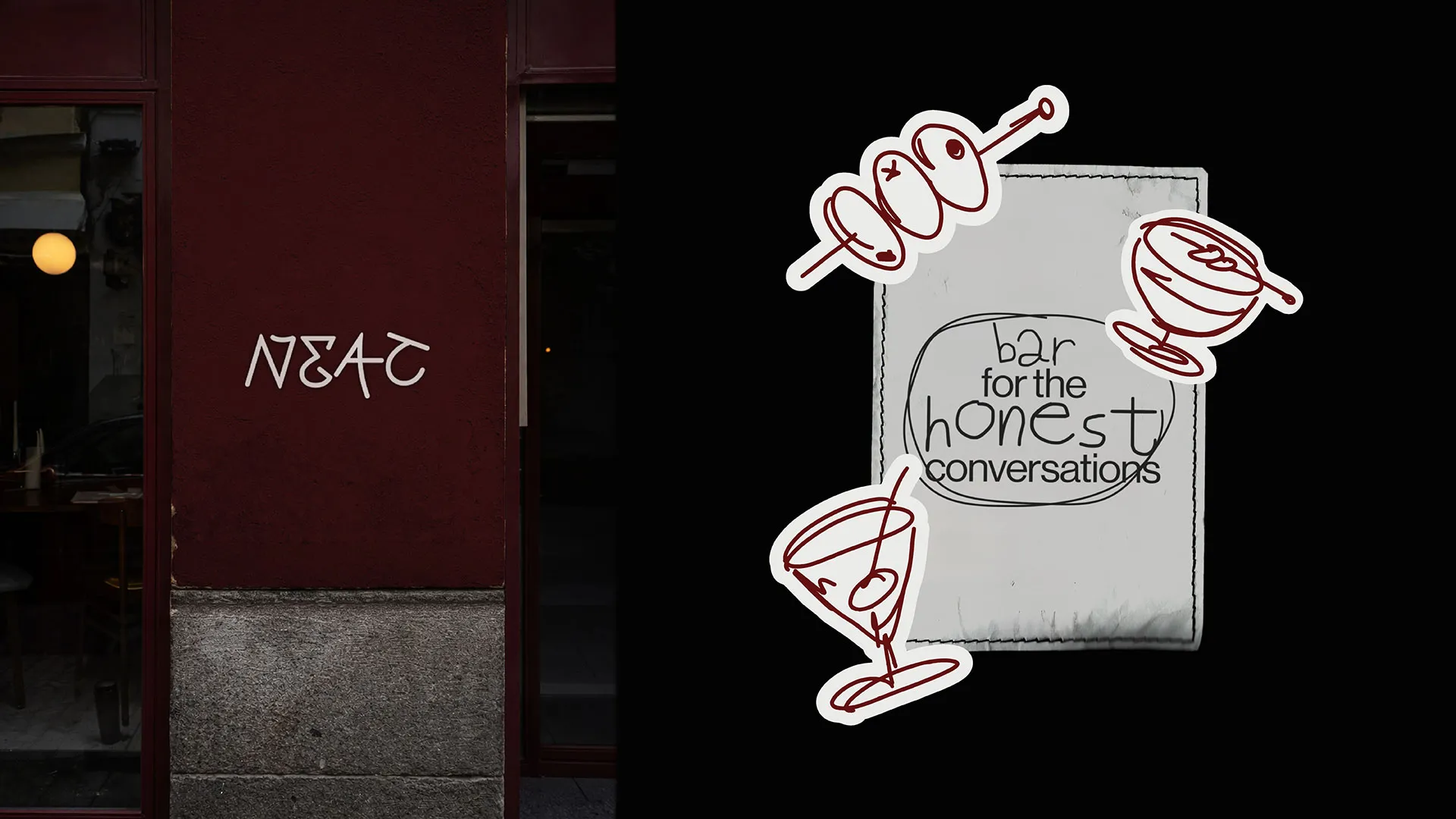 Neat is an experiential bar designed to hold space for these moments. Using drinks as conversational assistants, the bar gently eases people into honesty when it feels uncomfortable elsewhere. This project encourages expression within a casual social setting, allowing people to let loose, talk things through, and leave feeling a little neater.