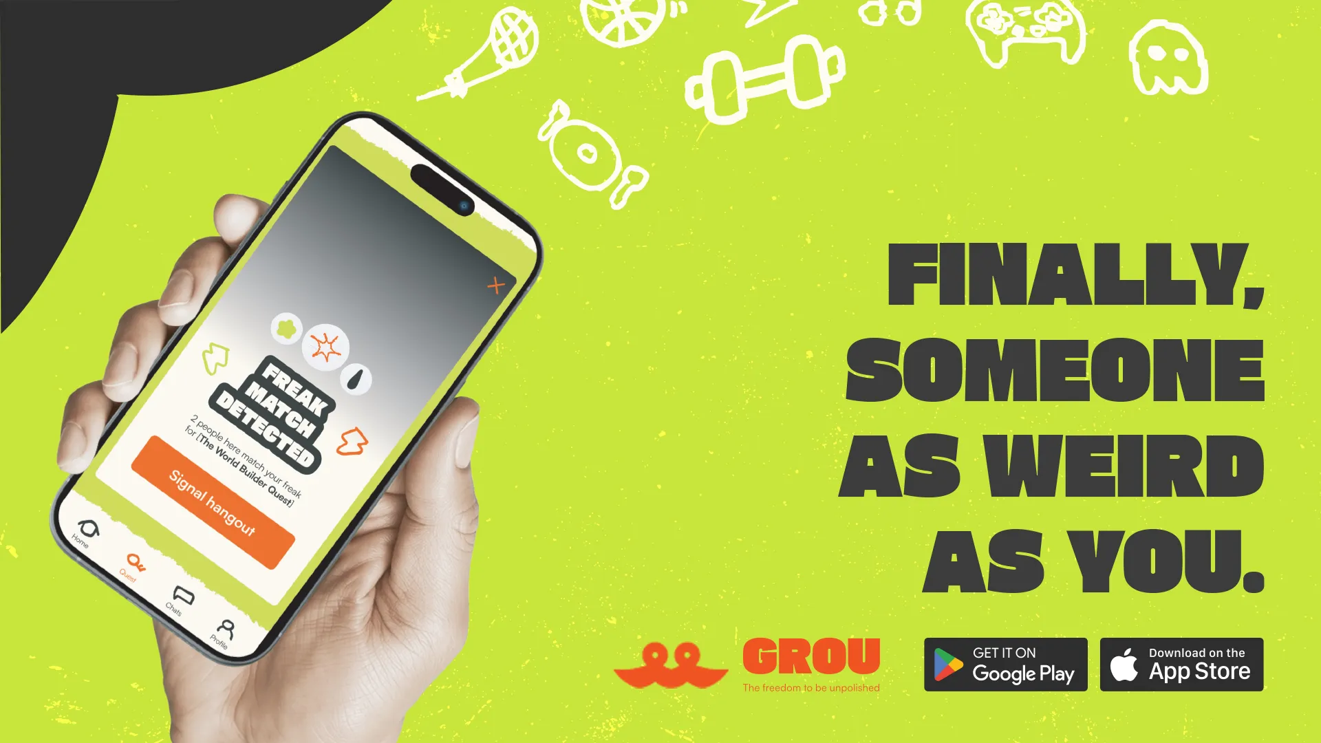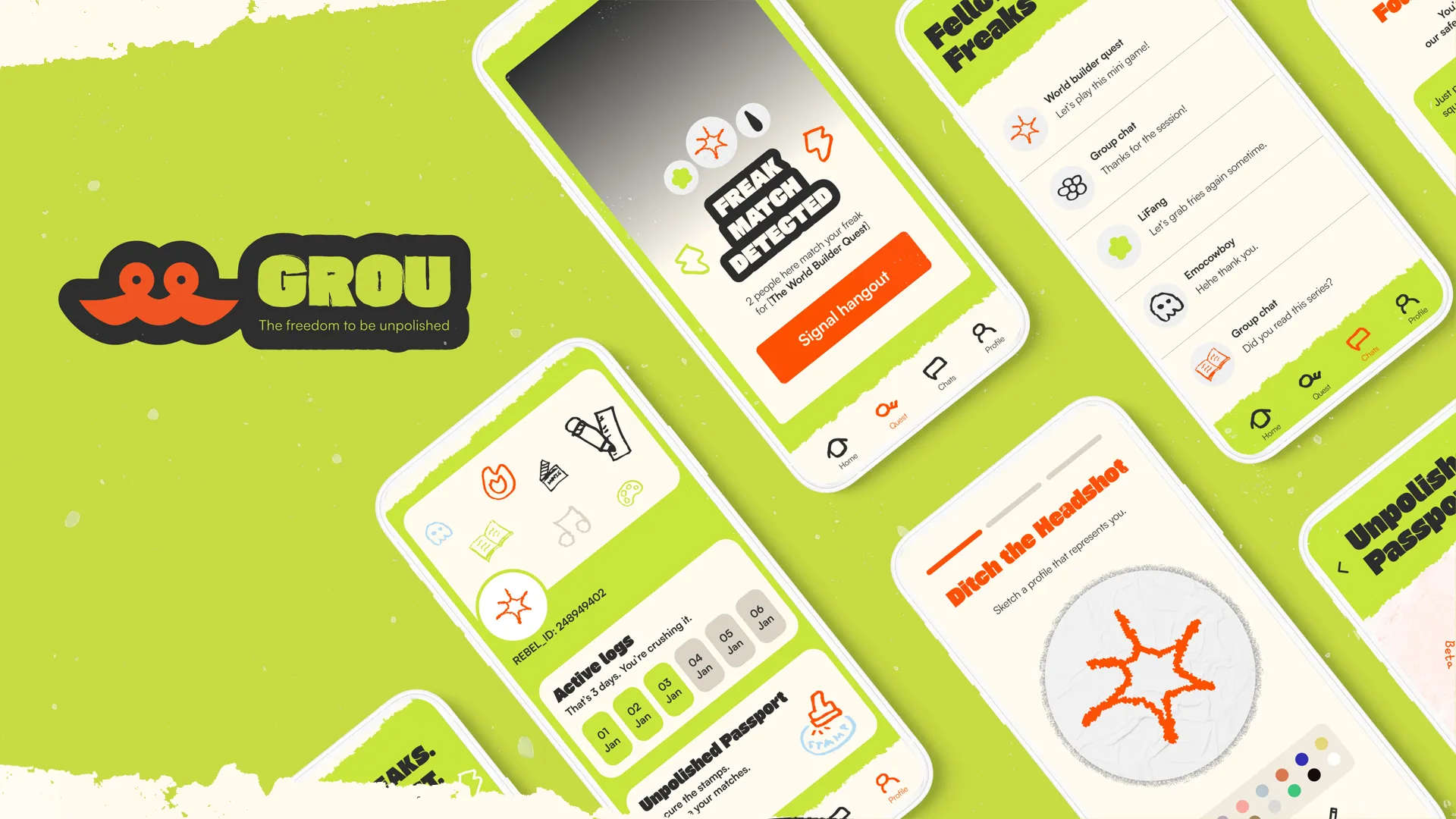 GROU is a social network that provides youths with the emotional safety to be themselves and the confidence to break free from their digital mask. To take the bold, unpolished steps towards reality. GROU reframes social networking as a “game” of matching niche interests. It replaces the pressure to “perform” with the freedom to be real. It isn't just an app, but also a movement to reclaim reality. It’s about being unpolished, being weird, and finally being seen.