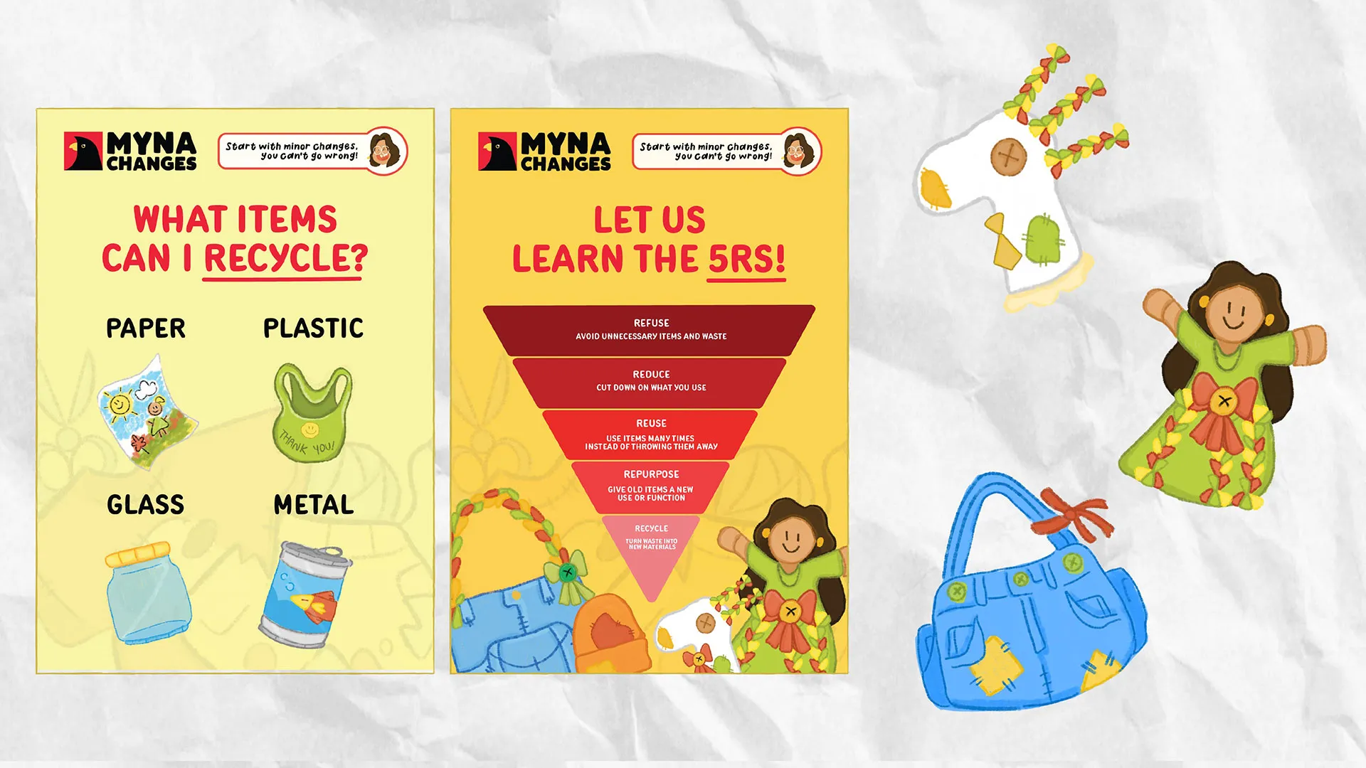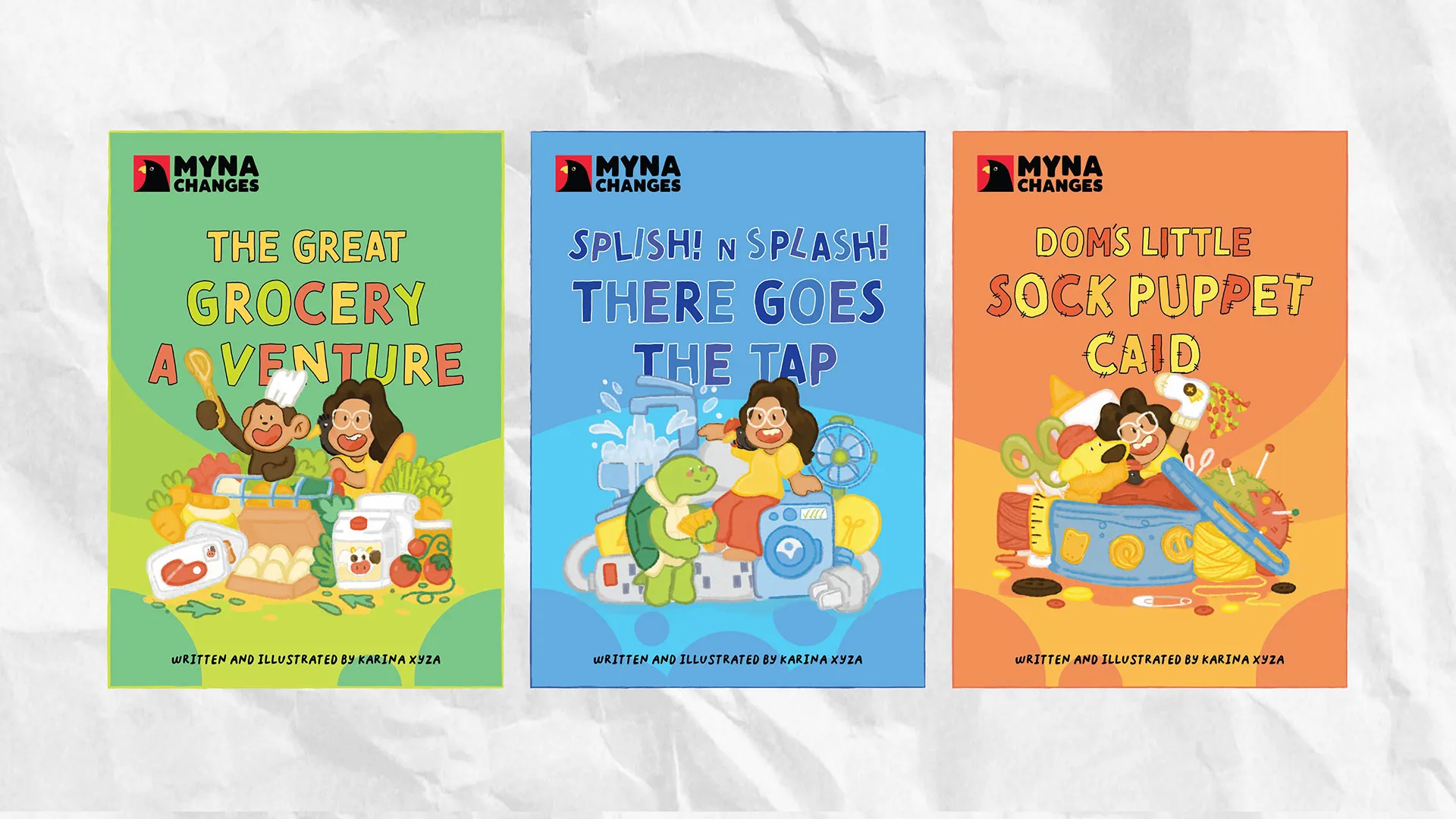 MYNA CHANGES is a book series with an interactive game that teaches young children about climate change. The books cover topics like carbon emissions, which are new to their syllabus and are set in everyday experiences that children encounter at home and around their neighbourhood. This helps them connect with the lessons and understand how small actions can make a difference.
