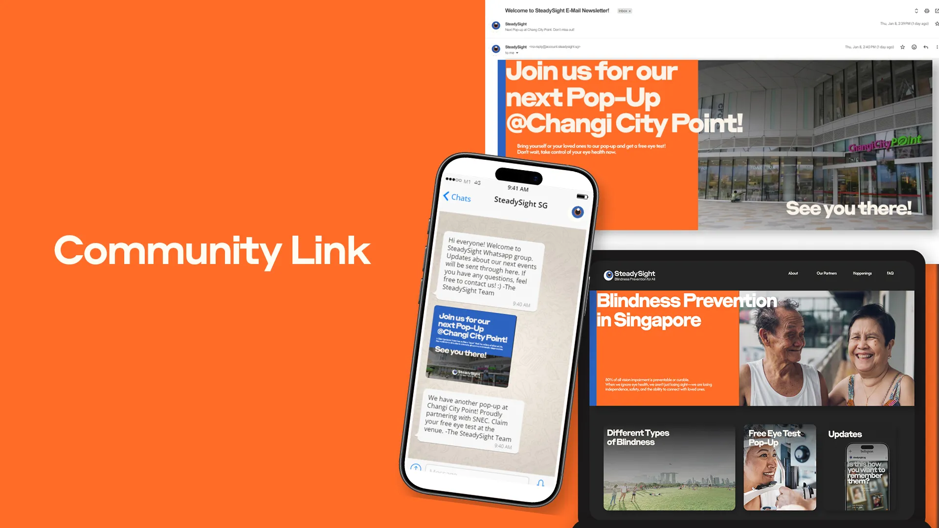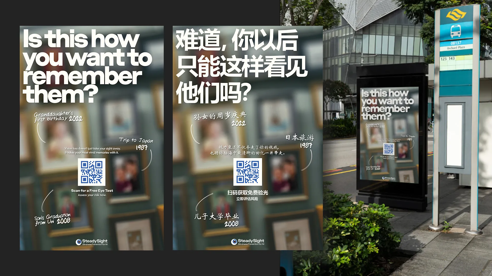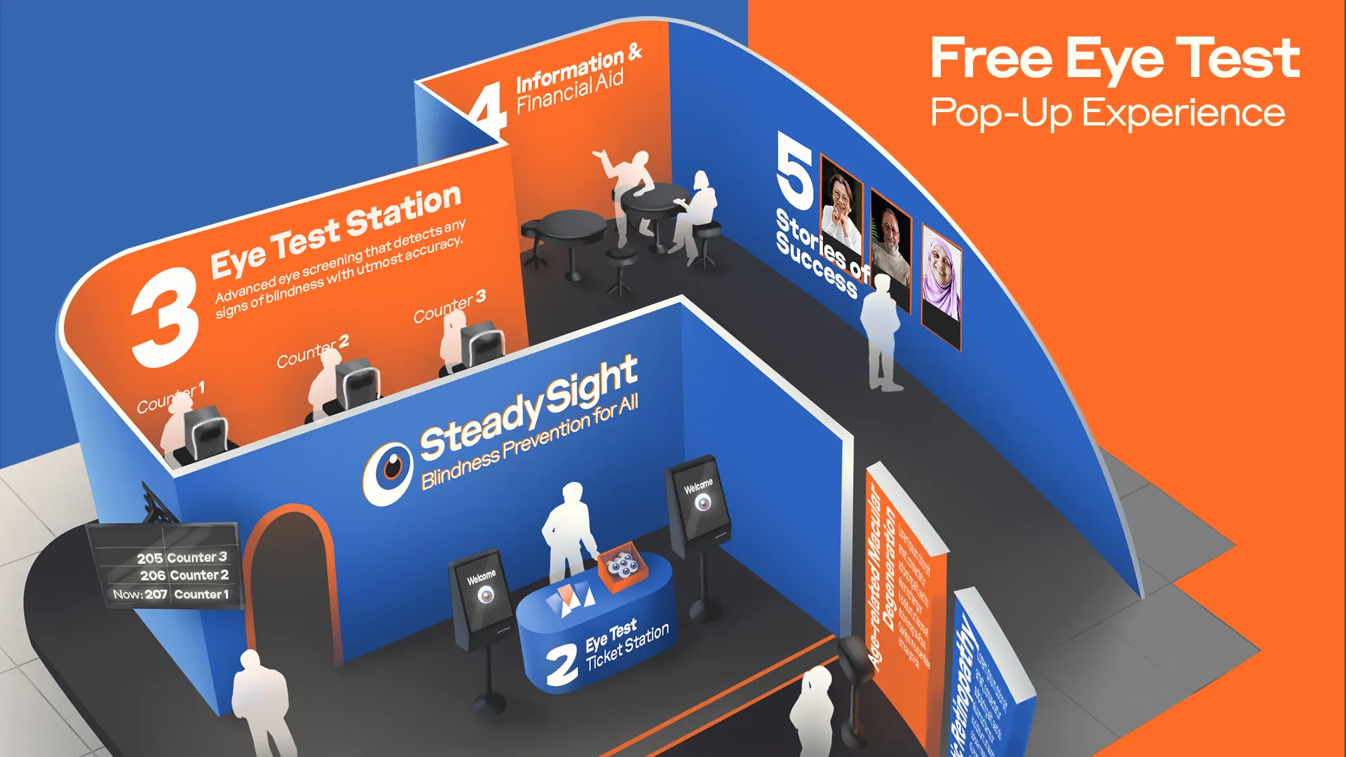 Introducing SteadySight, a blindness prevention campaign that tackles the fear of eye health management among older adults through pop-up exhibitions and free eye screenings, turning a source of fear and anxiety into empowerment.