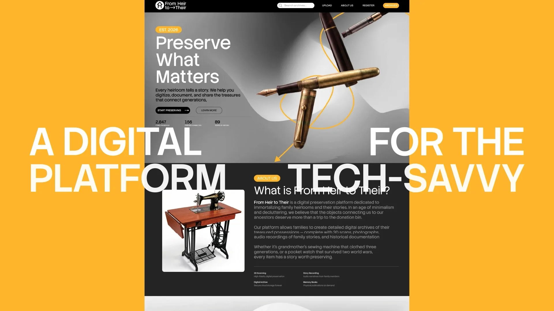 From Heir to Their preserves what matters most: the objects and their stories. Through 3D scanning, photography, and recorded narratives, we digitally immortalise family heirlooms, making them accessible to every descendant, everywhere, for generations.