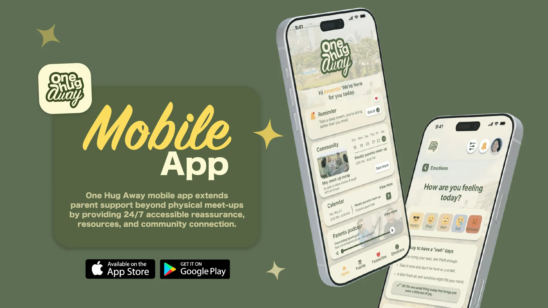 Through monthly neighbourhood-based meet-ups, One Hug Away provides a safe space for parents to connect, share experiences, and find reassurance without judgment.