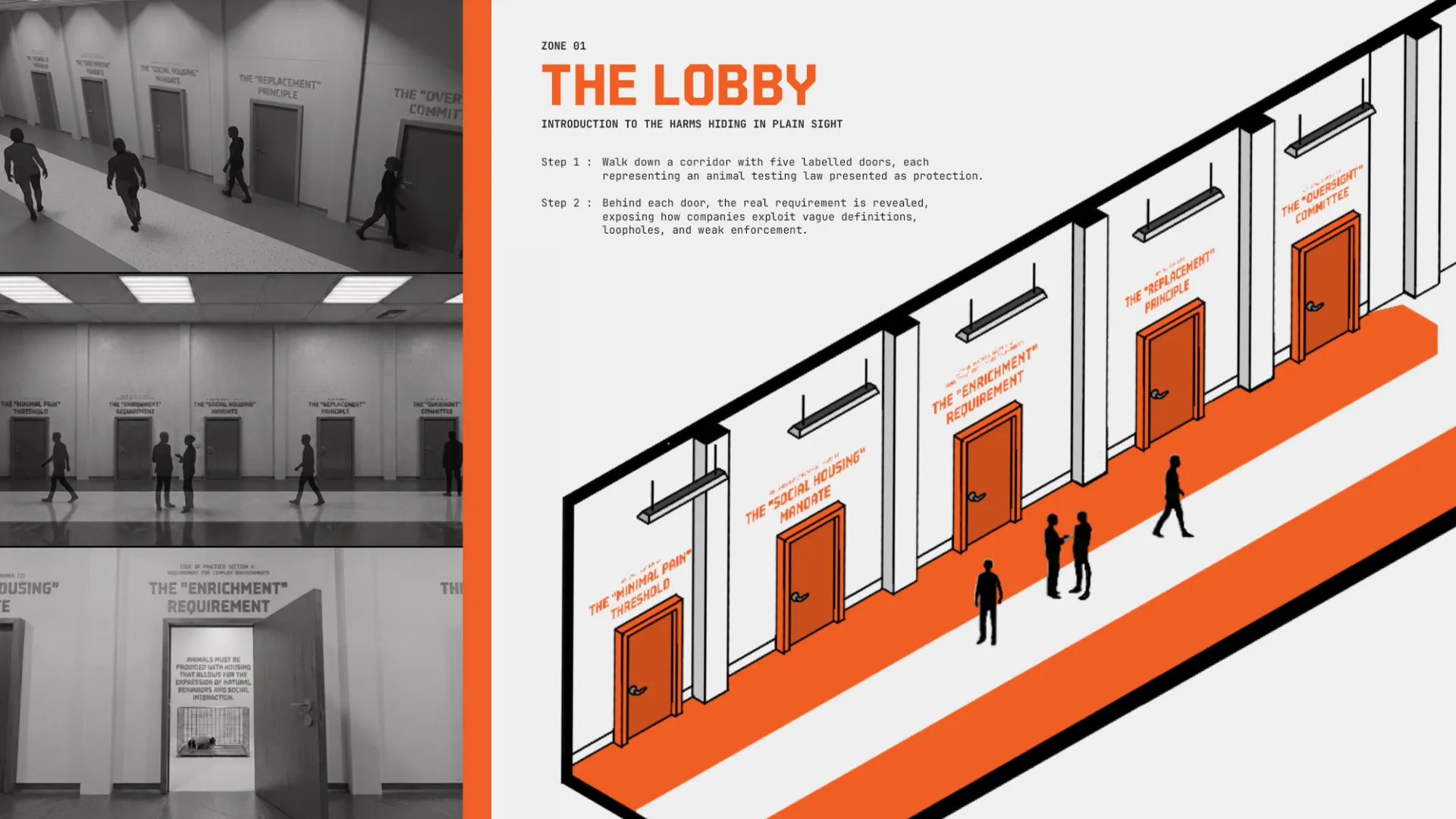 As much as we like to believe animal welfare laws protect laboratory animals, they don’t, at least not consistently. Not As Nature Intended is a speculative exhibition that exposes the gap between what animal testing laws promise and how they are actually enforced within laboratories.
