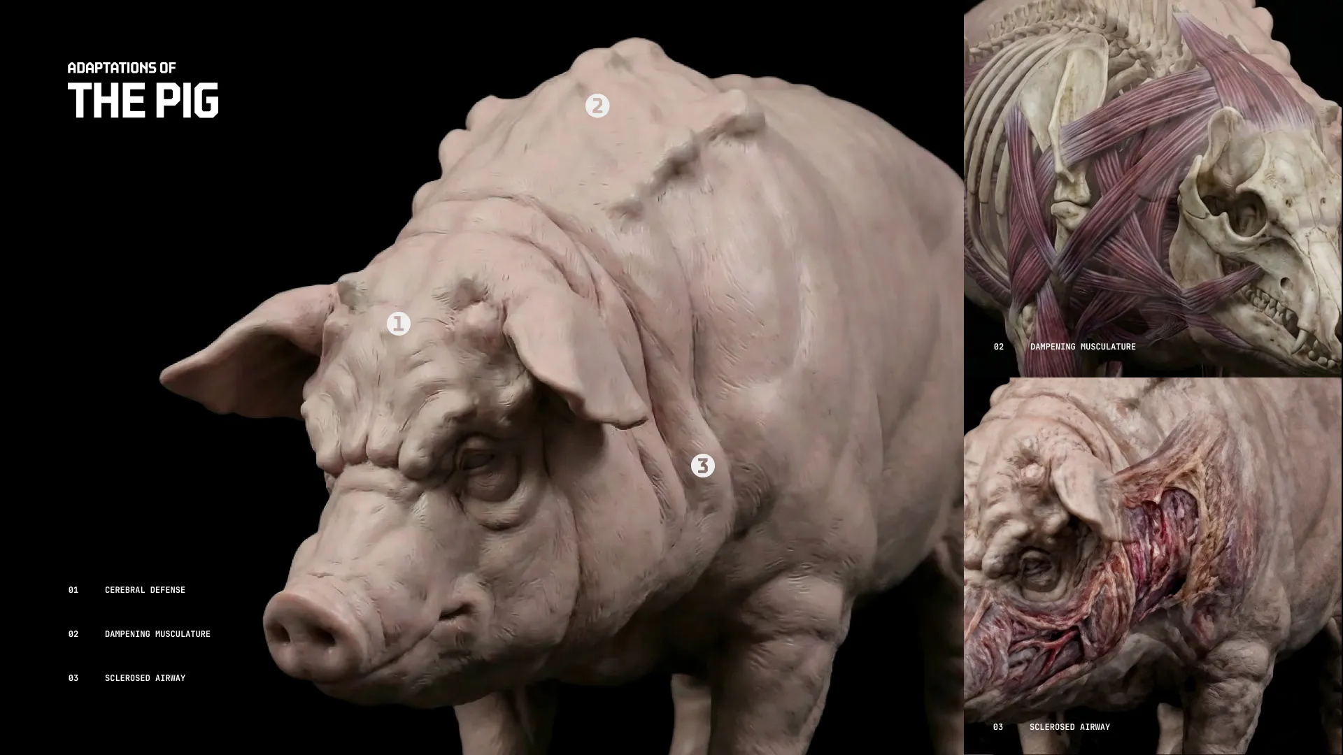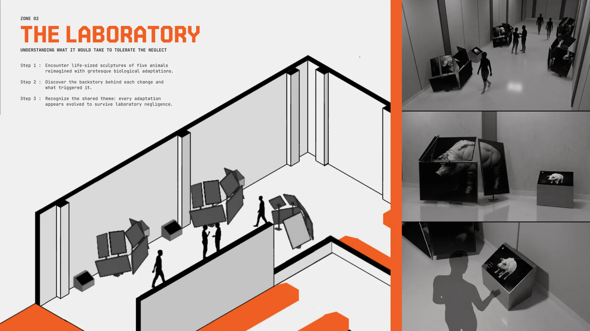 The project aims to make this gap visible through laboratory animals reimagined with speculative biological adaptations and exaggerated mutations that illustrate what these animals would need to become to endure the “minimal” suffering permitted when laws and regulations meant to protect them are neglected.