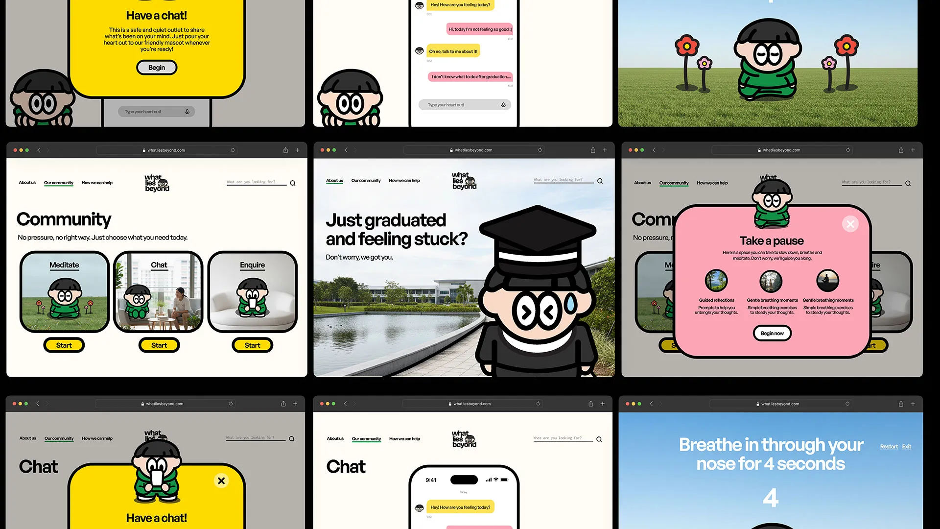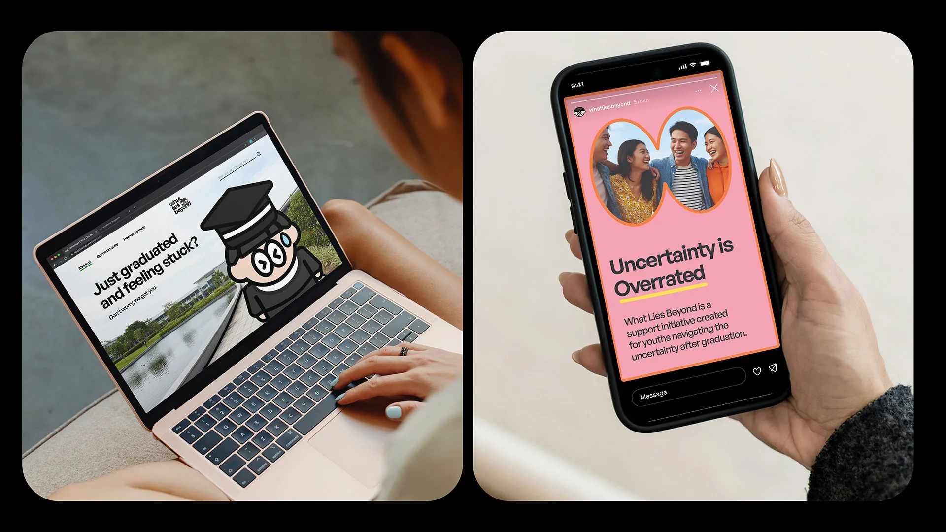 WHAT LIES BEYOND is a design-led support initiative responding to the emotional and educational uncertainty youths experience after graduation. It addresses the gap between formal education and early adulthood, where expectations to succeed often exist without space for reflection or exploration. Through a calm, open-ended approach across experiential and digital touchpoints, the initiative encourages youths to question fixed definitions of success, explore personal growth, and build confidence at their own pace. Rather than offering prescriptive answers or linear pathways, What Lies Beyond creates conditions for self-discovery, allowing direction, adaptability, and identity to gradually form through experience.