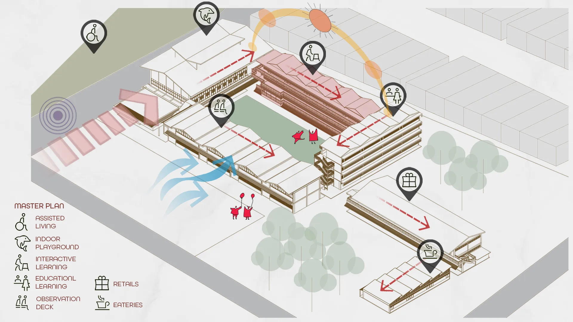 Offline Traverse seeks to restore the importance of children’s play as a foundation for the holistic development of future generations. Due to the difficulty of balancing work-life and parenting, children today rely heavily on digital devices and media as a new form of entertainment. This situation will lead to easy alteration of attention span and emotional patterns, which will further result in a decline in their social, mental, and physical health. Hence, my project introduces exploratory and sensory design for children to rediscover their curiosity and creativity through various activities throughout the space.