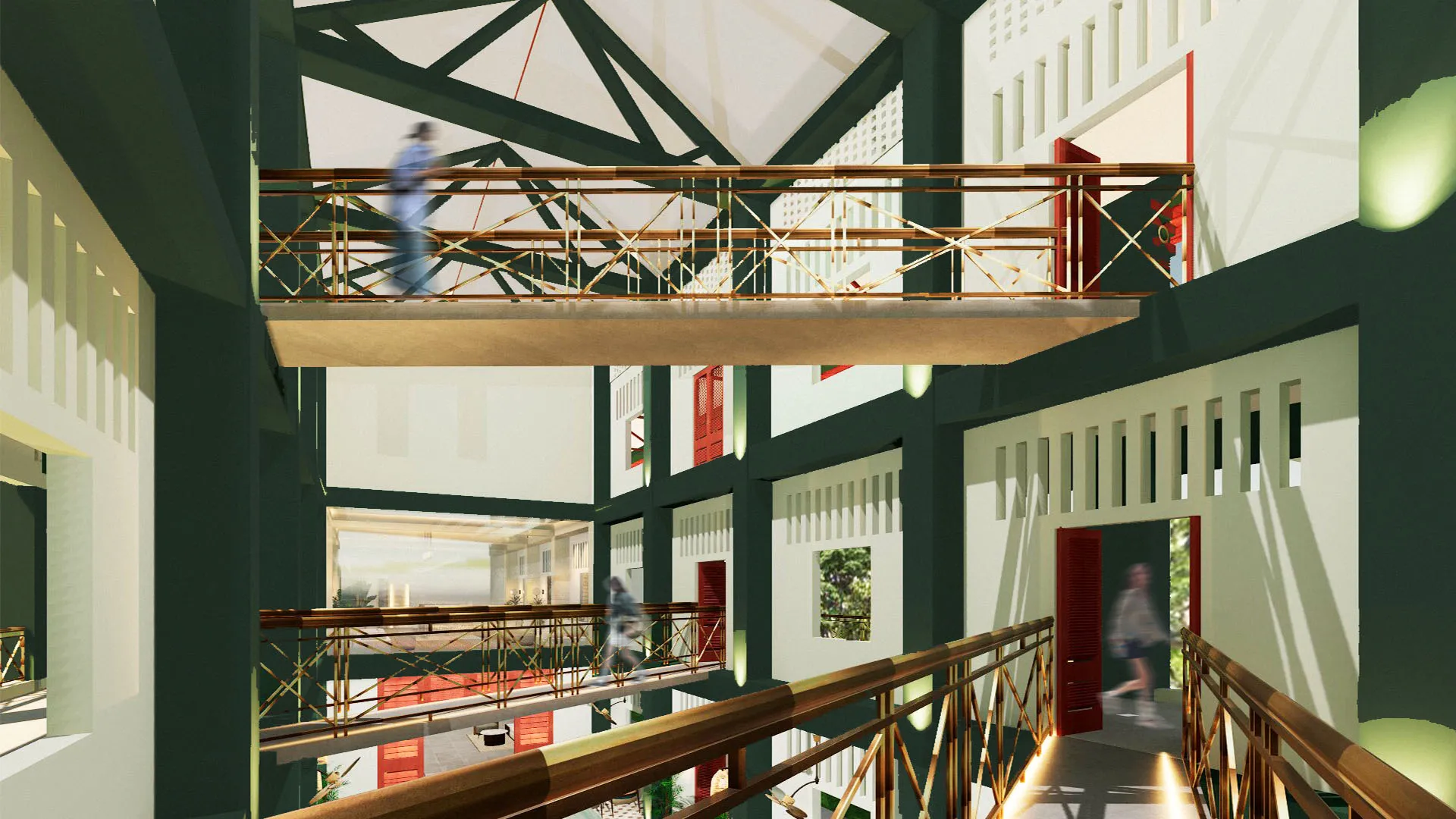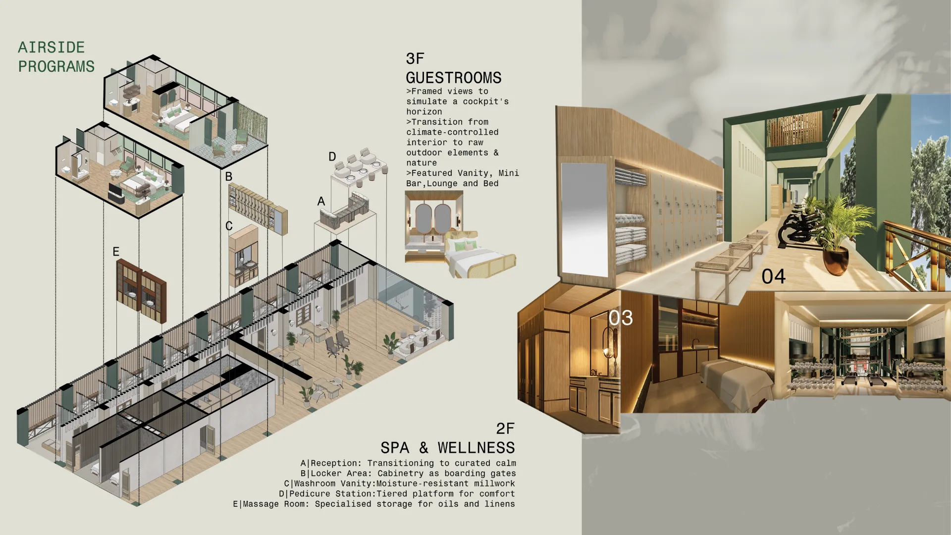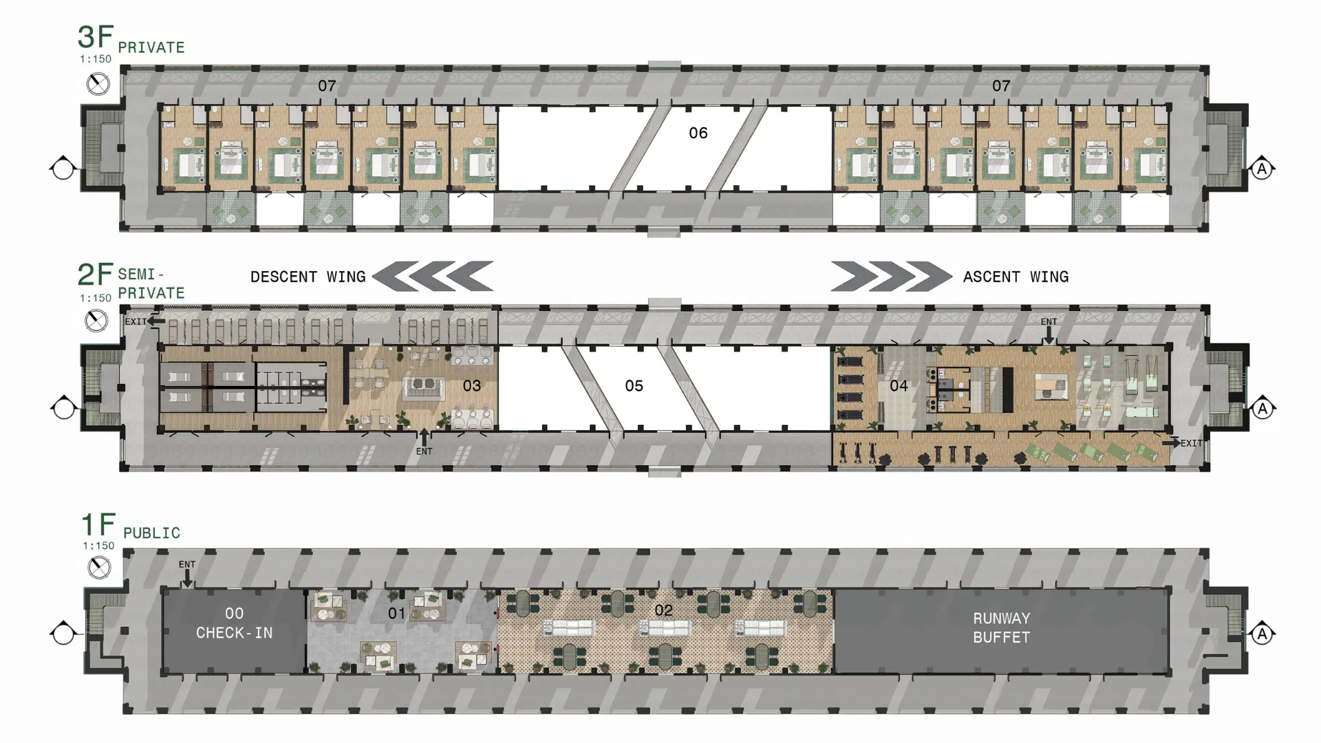 Located near Seletar airport, The Layover is a boutique hotel designed for travellers to escape the daily demands; its layout mirrors a journey from check-in to take-off. Through intuitive wayfinding bridges, the design seamlessly connects winding down and uplifting activities. Honouring natural heritage with passive cooling, the triple-height atrium serves as the visual heart and connection, allowing guests to reconnect and refresh with their journey at 450 Piccadilly.