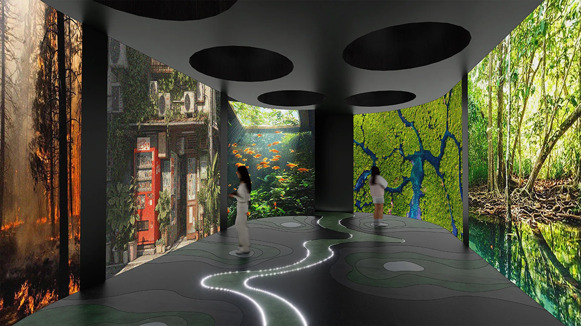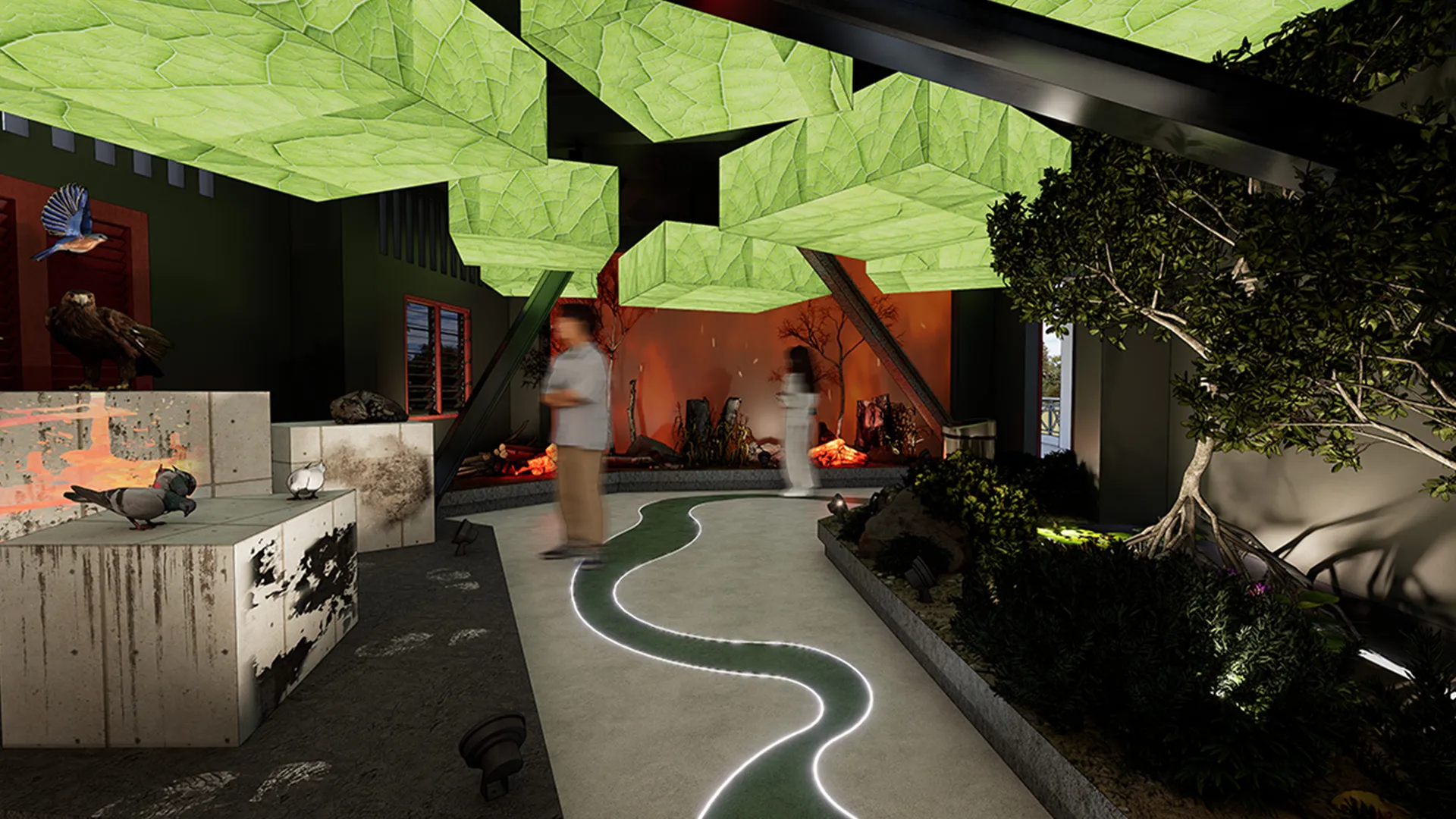 Parallax is a multidimensional exhibit designed to bridge the gap between human infrastructure and shrinking wildlife habitats. By addressing the prevalent ecological disconnection, this interactive experience uses immersive education and animal-friendly architecture by using augmented reality (AR) and other digital projections and displays to guide visitors through simulated environments, a choice-based interface allows users to navigate their own paths and witnessing the direct consequences of their actions in real-time. At its core, these technologies serve as a narrative tool, visualising invisible boundaries that fosters deep environmental awareness while empowering our urban population to champion a shared world with local fauna.