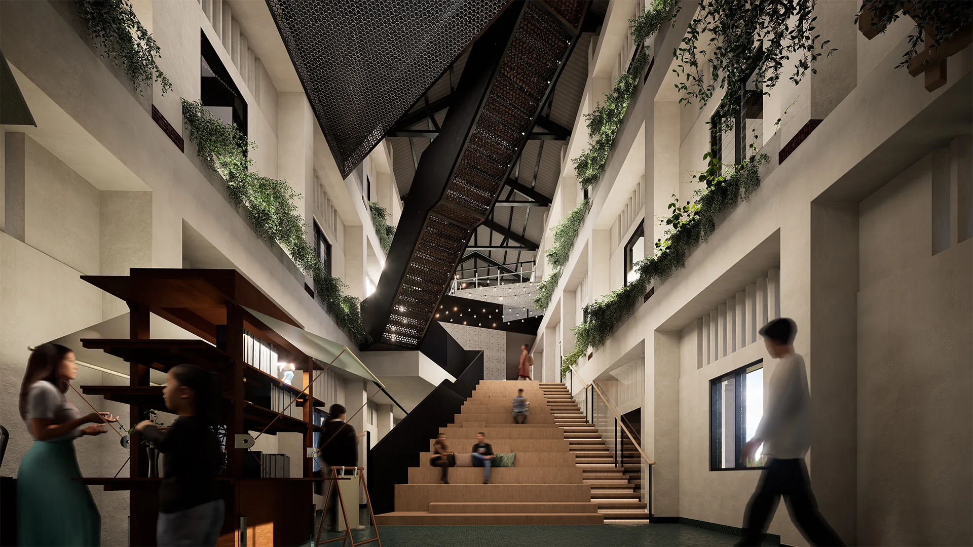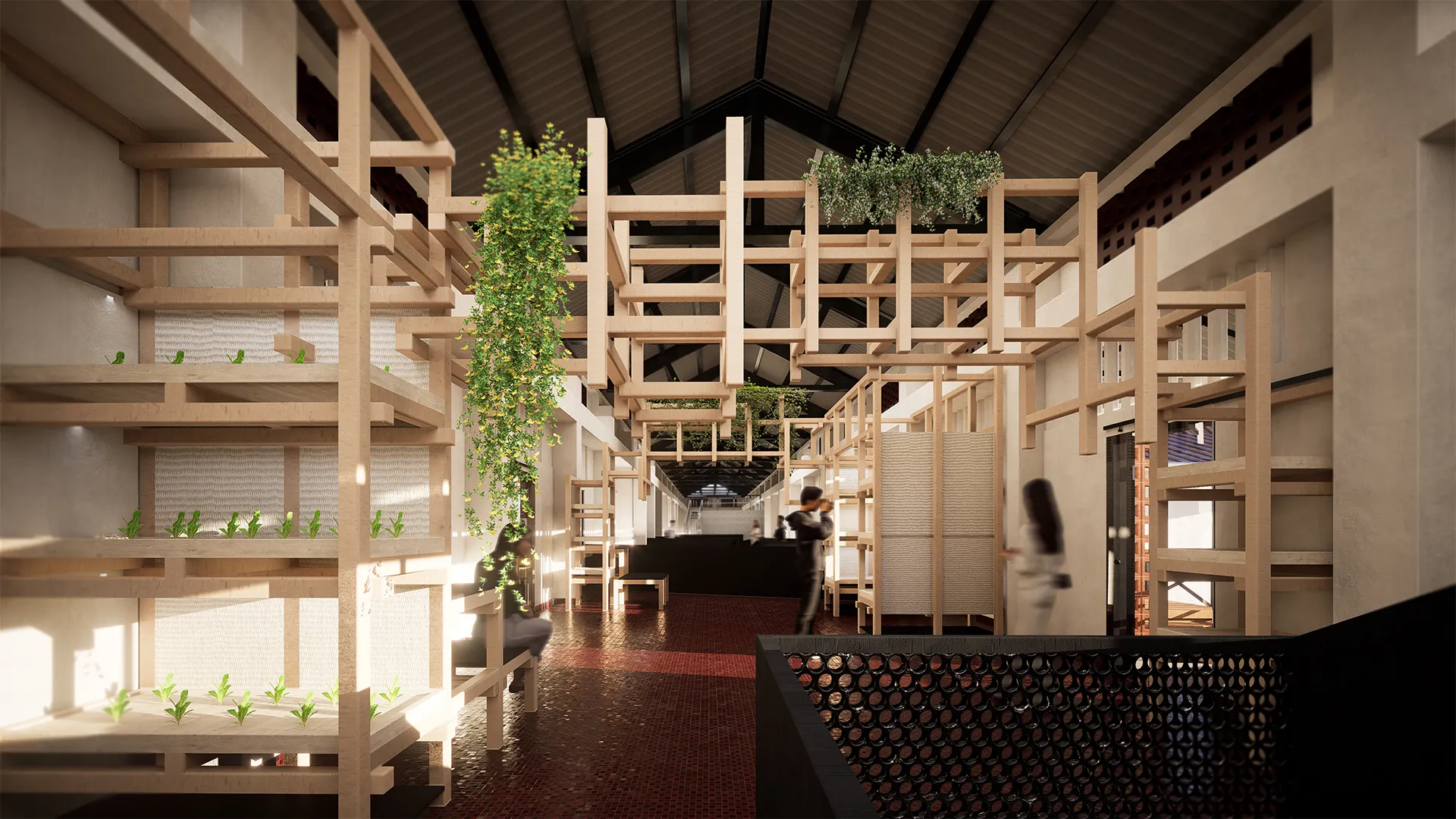 Harvest Bridge is a proposal for a central community hub that connects the building through a network of shared spaces and bridging elements. These connections form a continuous spatial journey, encouraging movement, interaction, and visual engagement across multiple levels. The hub acts as a social and civic anchor, bringing together diverse user groups within an urban context. Sustainability is embedded into the architectural framework through an integrated urban farm, where productive landscapes are woven into everyday communal spaces. By merging circulation, social activity, and food production, the project reimagines the community hub as an active system that supports sustainable living while strengthening relationships between people, space, and the city.