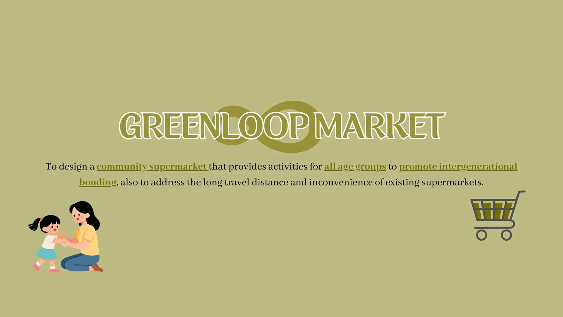 The GreenLoop Market responds to the lack of a nearby supermarket at 30 Parry Avenue, Singapore. The area is predominantly residential, and many residents, especially elderly individuals and families with young children, must travel far to purchase daily groceries and household essentials. This situation creates inconvenience, reduces accessibility, and affects the overall quality of life. GreenLoop Market proposes a centrally located, community-oriented supermarket that enhances everyday convenience while fostering stronger neighbourhood connections. By placing essential services within walking distance, the project promotes inclusivity, accessibility, and a more supportive environment for residents of all ages in the community.