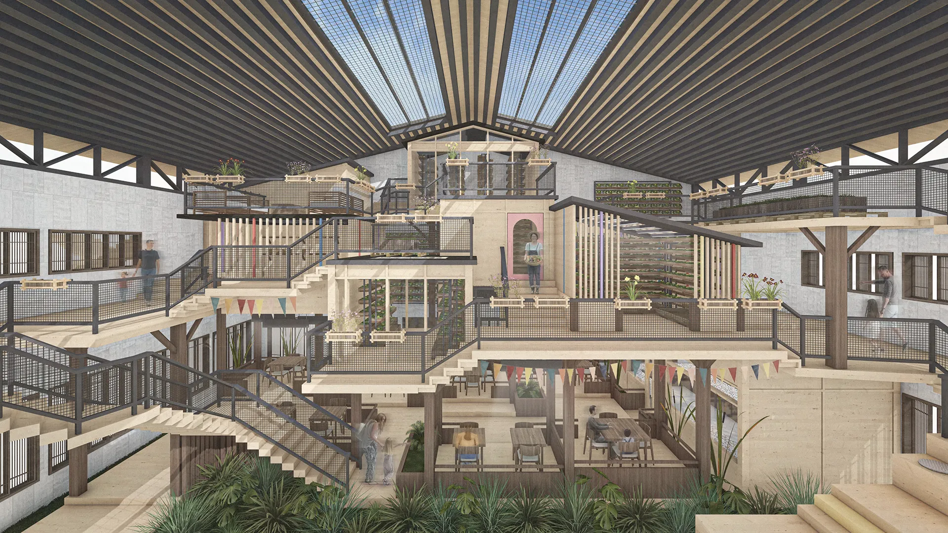 Re:HABIT reimagines family housing as a living classroom. Designed as a subsidised, community-centred residence for young families, it embeds hydroponic and soil-based food production directly into daily life. Children and parents grow, harvest, cook, and learn together through visible, hands-on systems woven into shared spaces. By normalising low-waste living, local food cycles, and collective stewardship, the project cultivates environmentally conscious families and supports a resilient community aligned with SDG 11 and SDG 12.