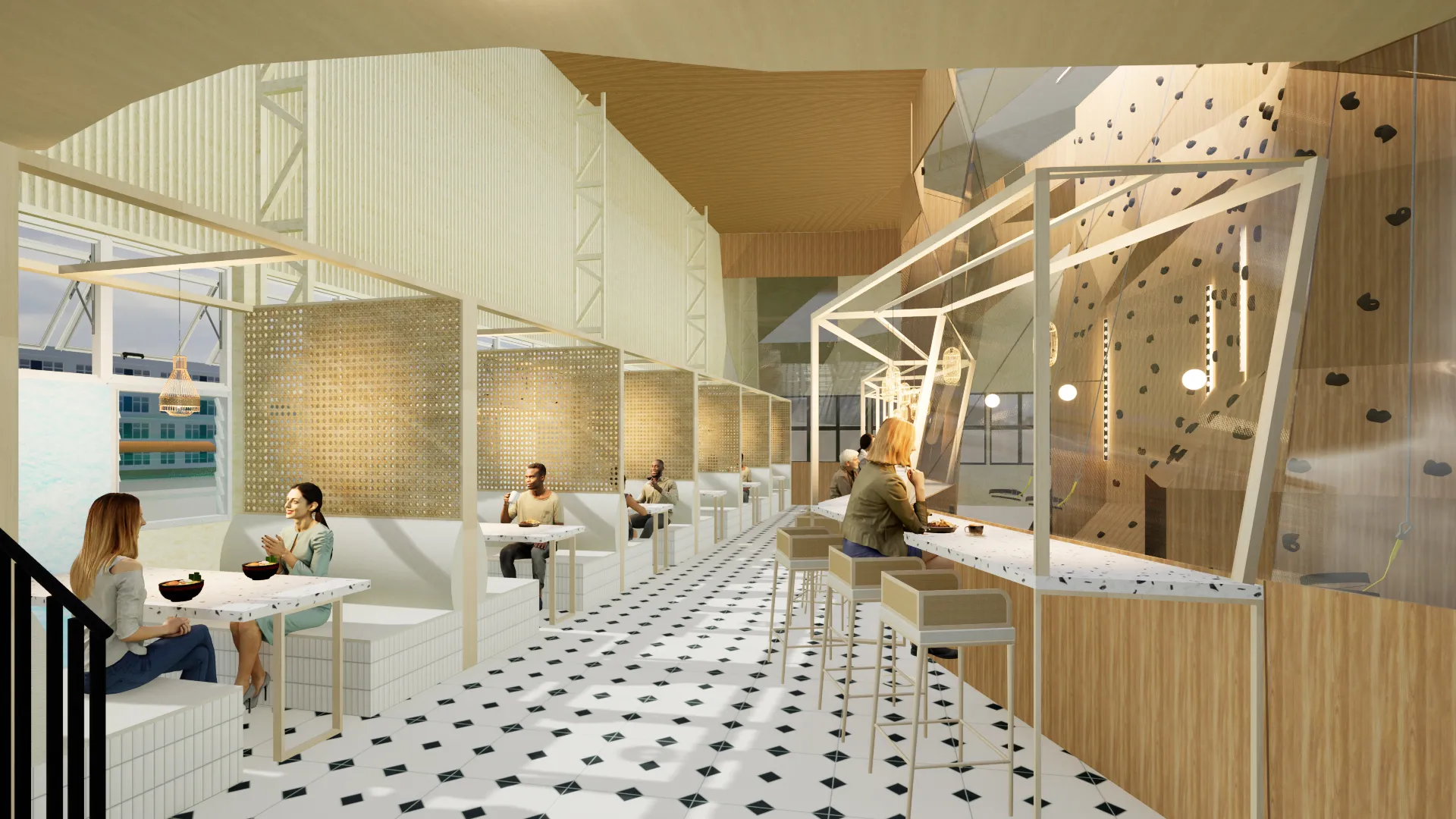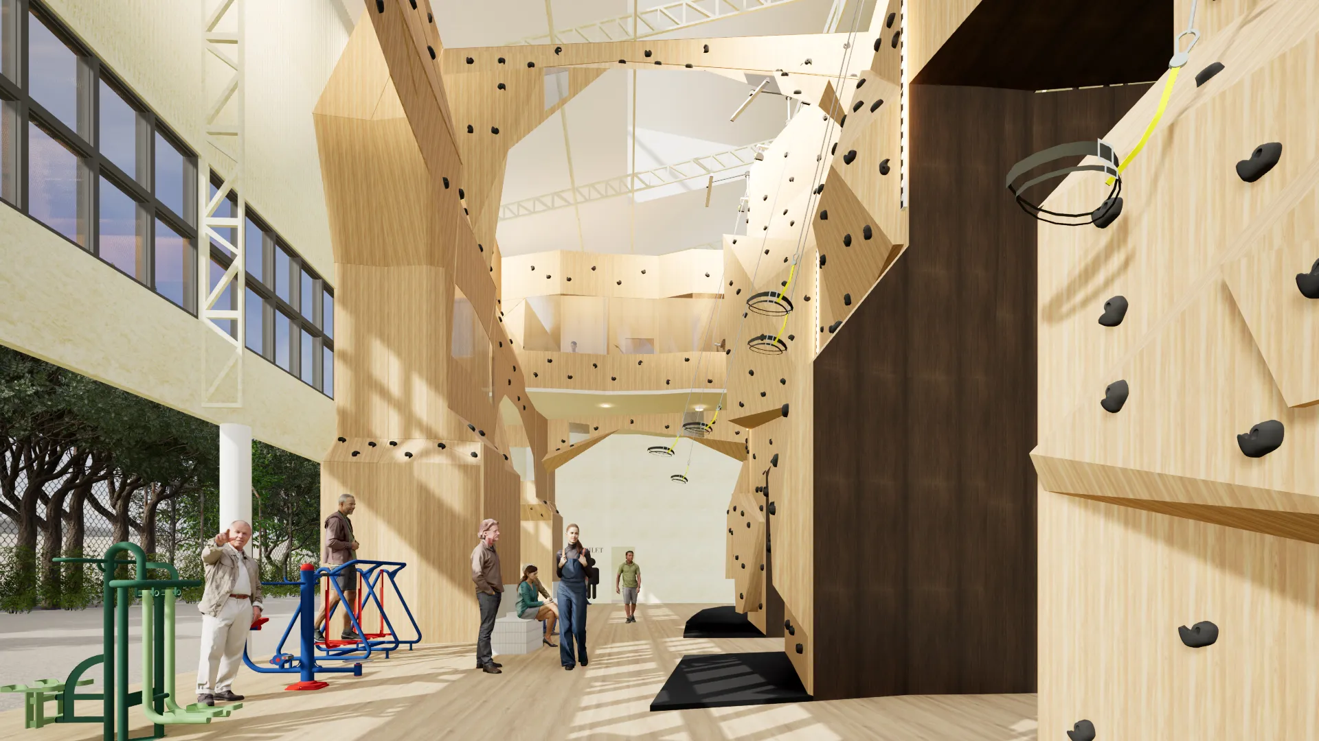 Over the years, there has been an increased number of adults as early as 40 years old suffering from health illnesses. 30 Vertex Hub is a community hub for residents ages 40 and above to play, learn and connect. The space provides learning and recreational activities, as well as opportunities for individuals to forge connections. This retains the core principles of Parry Avenue,while promoting longevity and active ageing. With a triple-volume high rock-climbing wall as the centre of attraction, it encourages individuals to challenge themselves beyond their limits while remaining physically active. The design explores various forms and spatial experiences, shaping how users would feel, move and interact within the space.