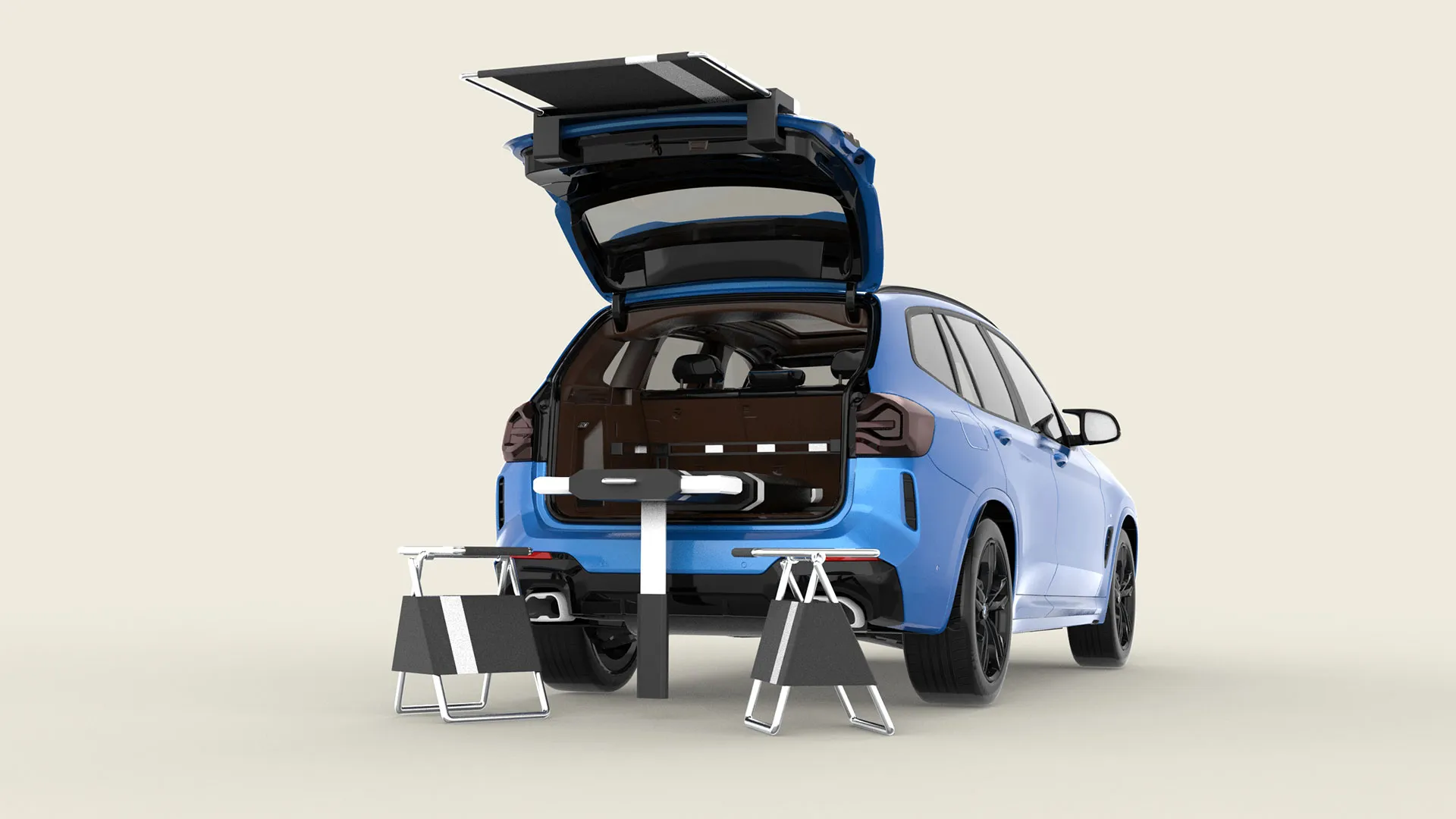 Aeromy is a car-integrated system designed for aviation enthusiasts during plane spotting sessions. The system transforms a vehicle's boot into a deployable setup comprising a mounted shelter, a pull-out table with storage, and compact, foldable seating. Rather than functioning as separate camping accessories, Aeromy operates as a cohesive ecosystem, with each component designed to optimise boot space and simplify setup. The shelter provides shade while the table and seating create a comfortable viewing station. By integrating storage, mobility, and user comfort, Aeromy enhances the outdoor observation experience while maintaining efficient use of vehicle space.