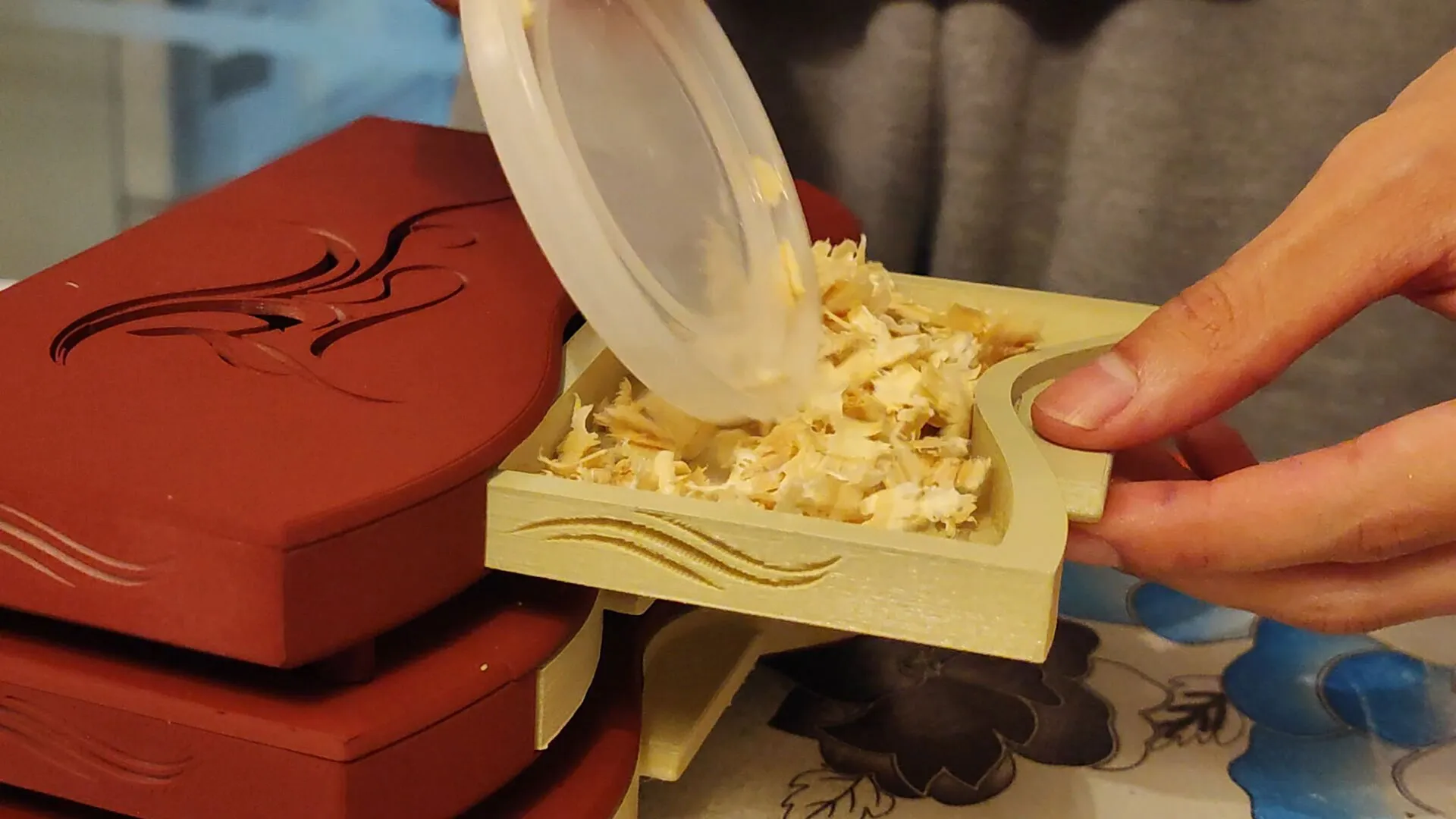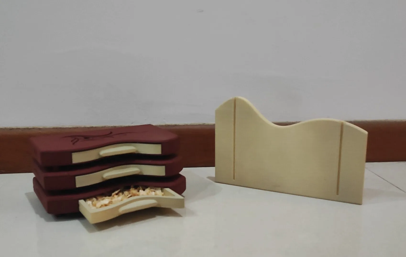 Airnest and Walltz form a modular home organisation system that combines functionality with sensory enhancement. Finished in natural wood tones from dark walnut to light pine, the system blends seamlessly into modern living spaces such as Singaporean HDB homes. Walltz functions as a minimalist wall-mounted base, while Airnest attaches as a compact shelf with integrated storage slots and a compartment for wood chippings, allowing it to double as a subtle aromatherapy diffuser. Ideal for space-constrained areas like bathrooms, the 22 cm-wide unit offers a practical yet decorative solution that organises daily essentials while enriching the room’s tactile and aromatic atmosphere.