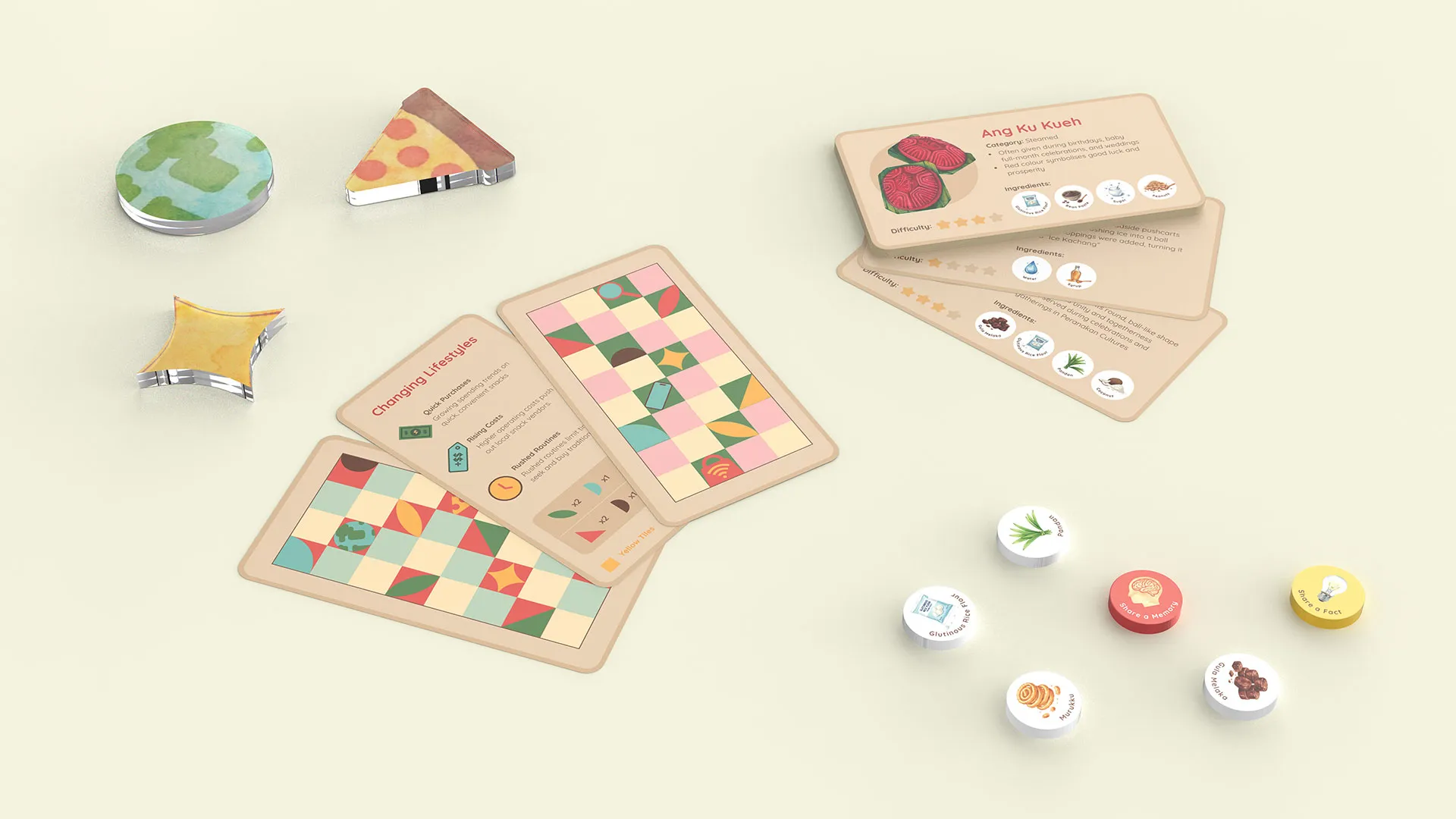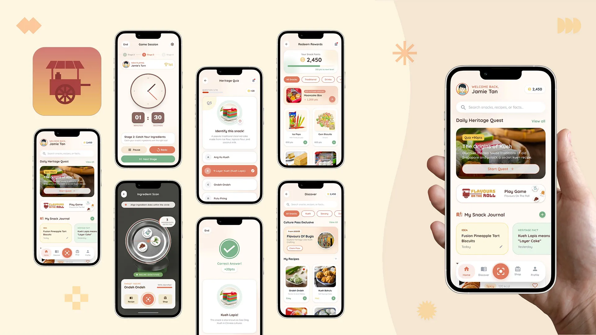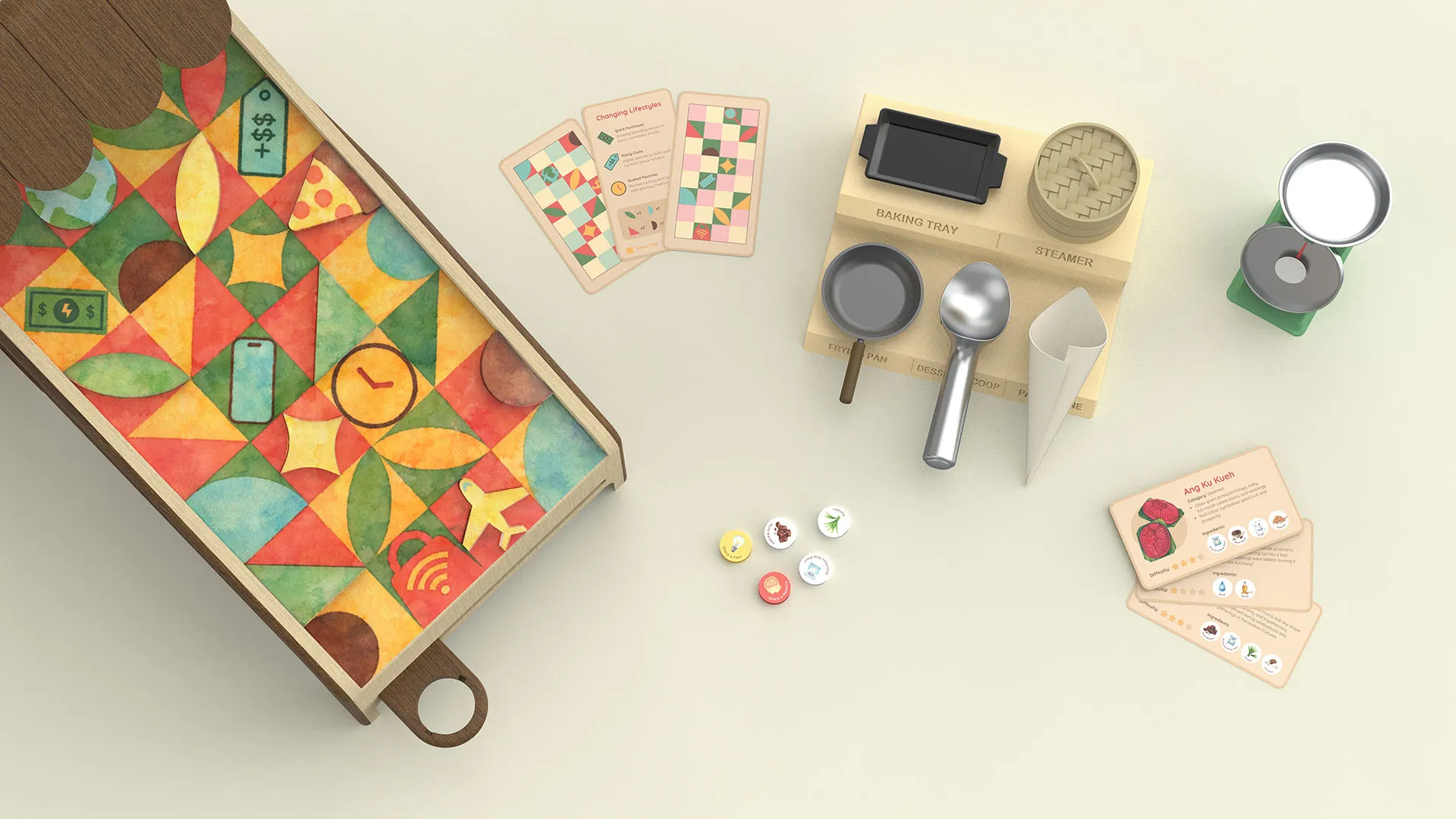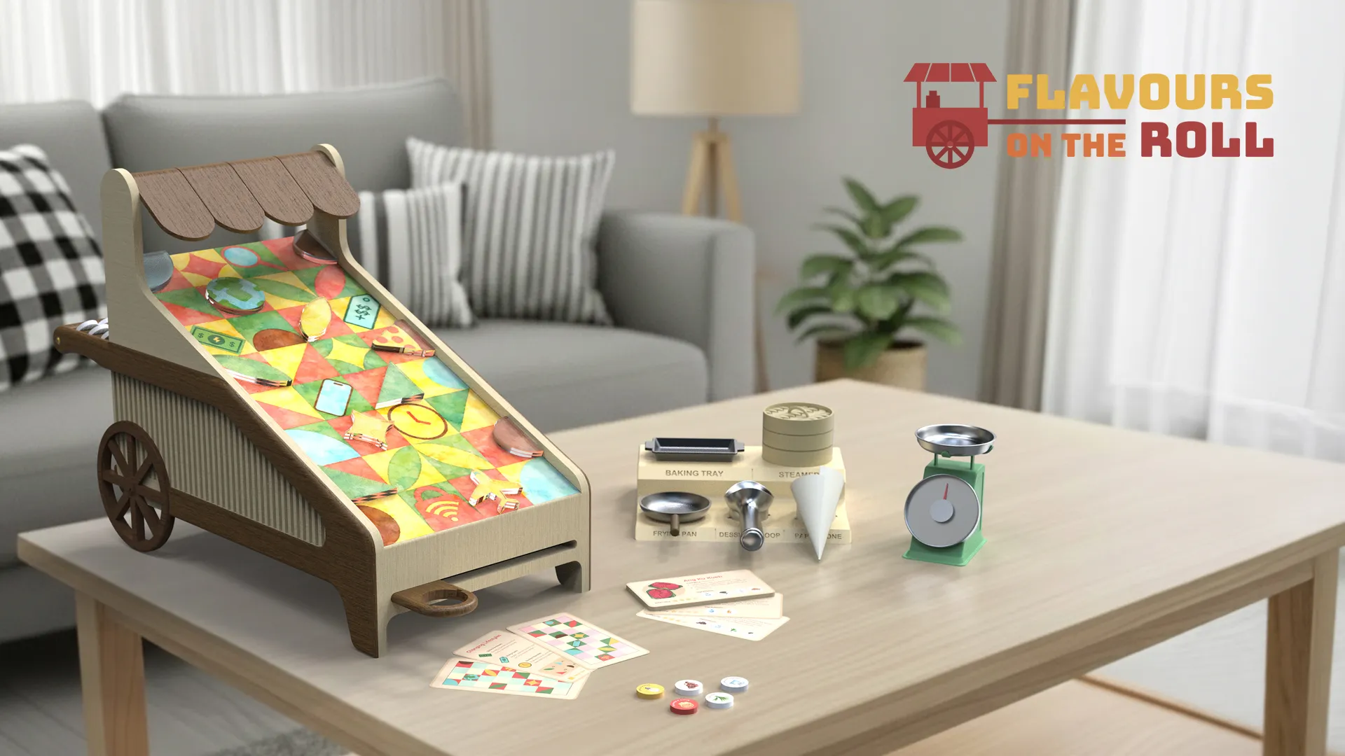 As Singapore modernises, traditional snacks are fading from everyday family life, creating a cultural gap between generations. Flavours On The Roll is an interactive tabletop experience that reconnects families with local snack heritage through play. Inspired by traditional snack carts, the game blends roleplay, physical interaction, and learning. Players build obstacles reflecting real-world challenges to snack culture and race to collect ingredients to recreate local treats. Through this process, they discover preparation methods, ingredients, and cultural stories. By transforming heritage into a shared, playful activity, the experience fosters conversation, reflection, and renewed appreciation for Singapore’s traditional snack culture.