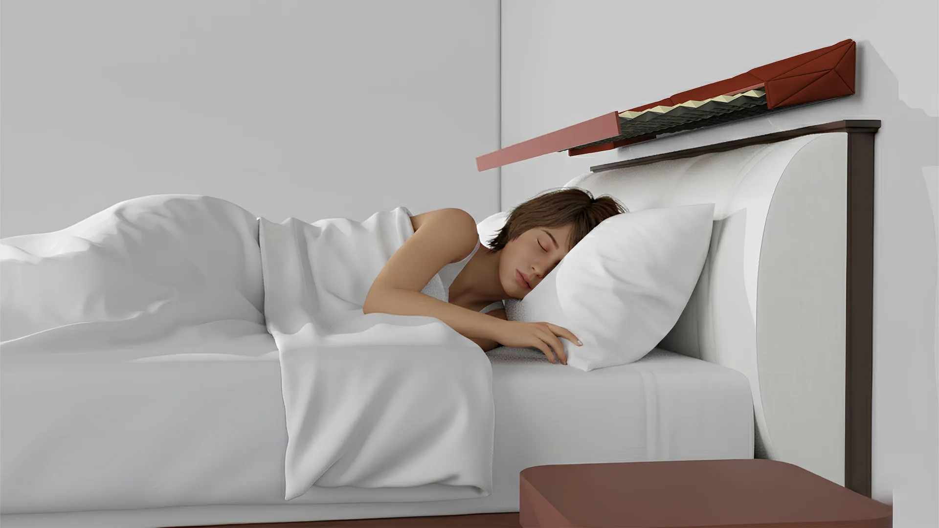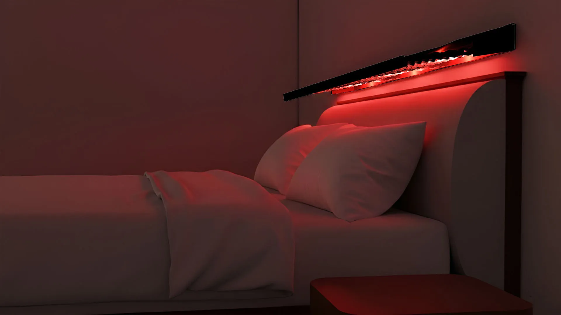 Featuring a minimalist aesthetic, the design incorporates integrated red-spectrum lighting to preserve melatonin production and facilitate a seamless transition into deep REM sleep. It also features a soothing sunrise that subtly wakes the user to a refreshing morning. All these combine together, allowing users to reclaim control over their sleep environment.