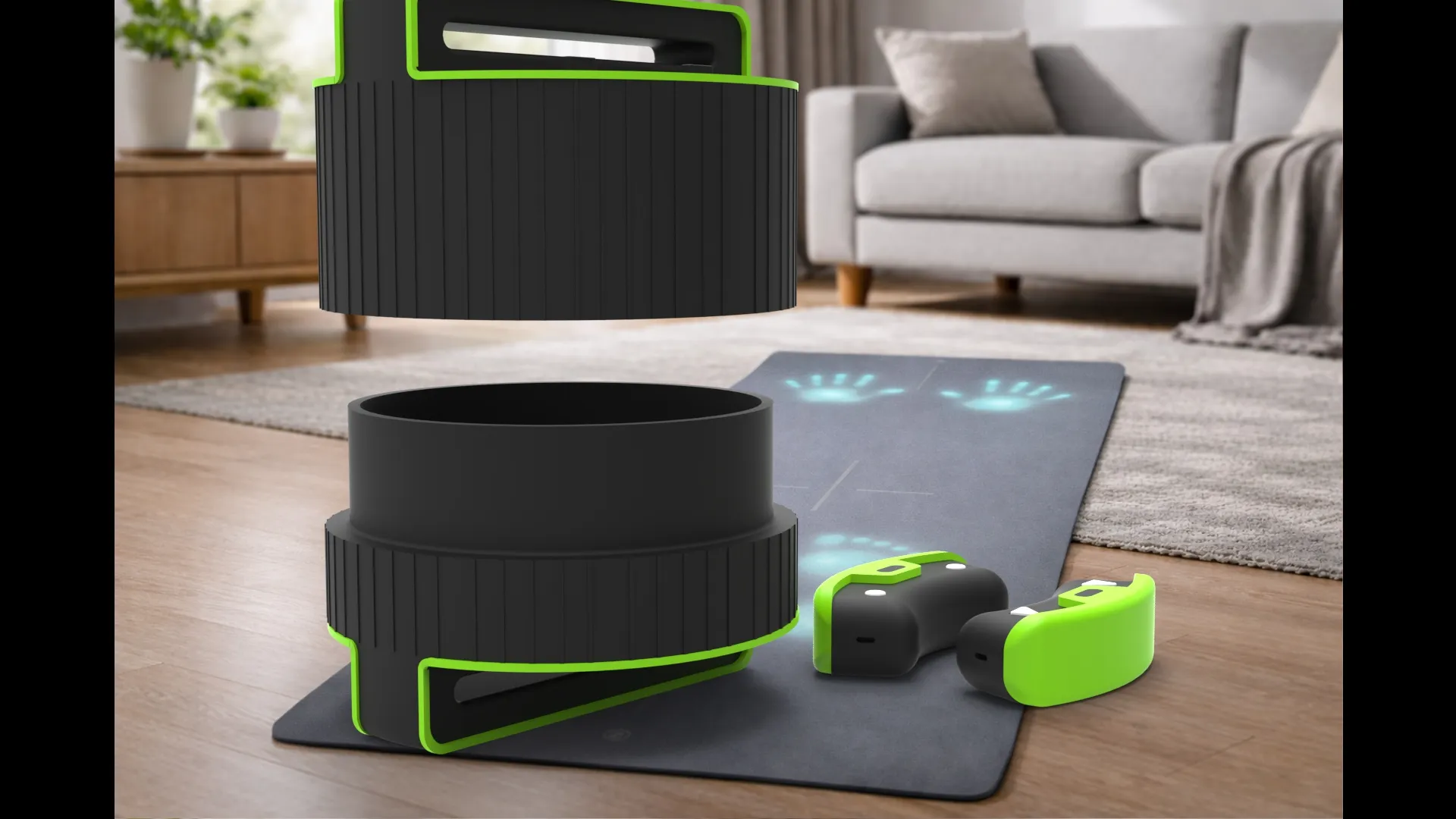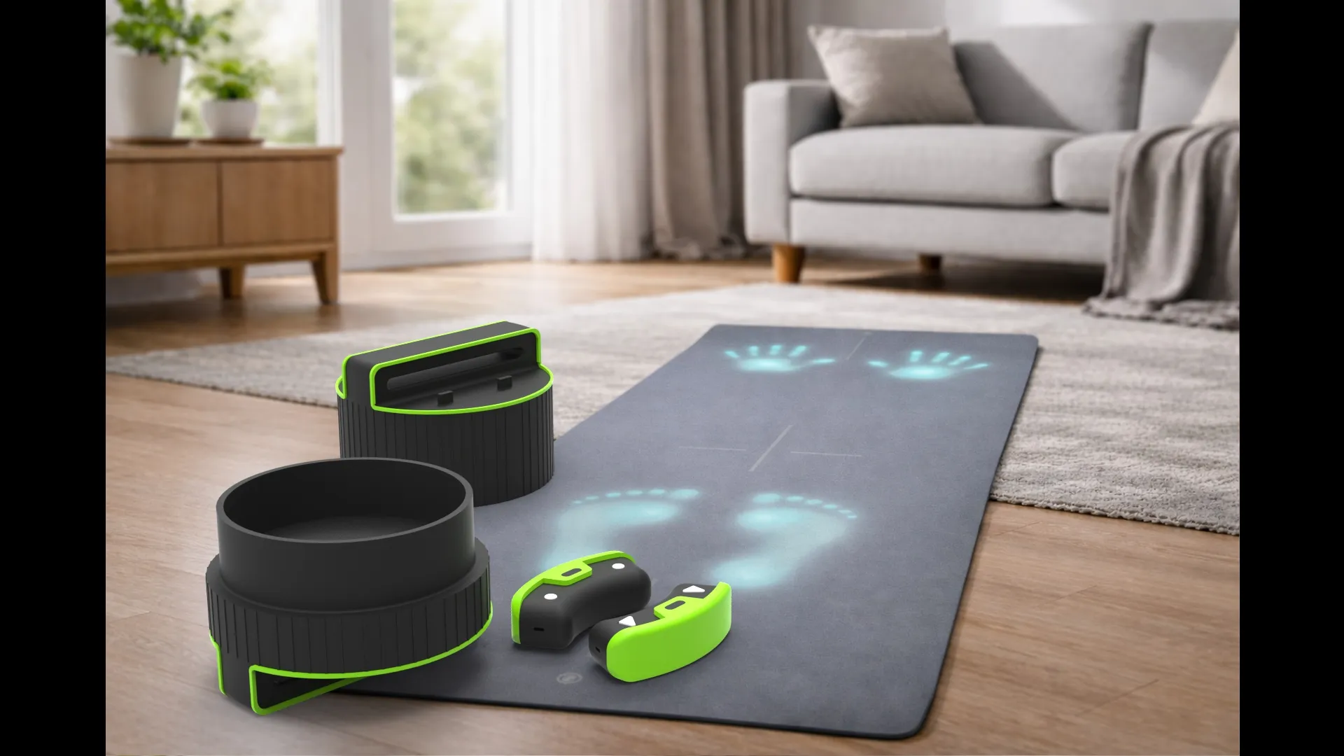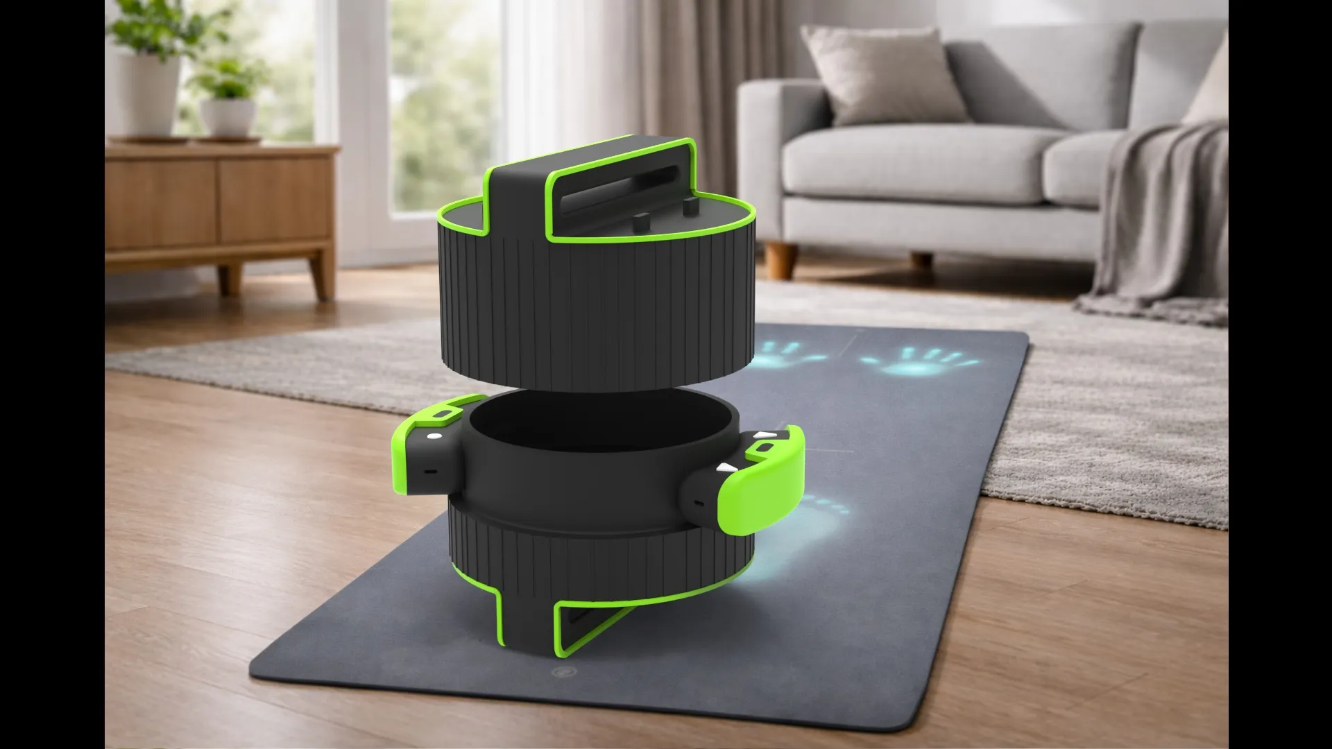 MotionCore is a functional and hassle-free exercise solution designed to help youths build consistent workout habits. It features a smart exercise mat embedded with light and pressure sensors that detect movement and visually guide users through workouts. The top cap holds a smartphone for easy viewing during exercise, while the bottom cap wirelessly charges the mat and secures both ends for portability. A pair of motion-sensing controllers enables multiplayer interaction and tracks arm movements. Paired with the MotionCore app, users gain access to guided workouts, an exercise information library, and real-time performance tracking, creating an engaging, all-in-one fitness platform for youths.
