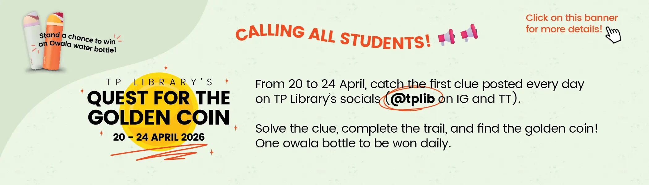 From 20 to 24 April, TP Library invites students to take part in the Quest for the Golden Coin: a treasure hunt-style game held right here in the library.